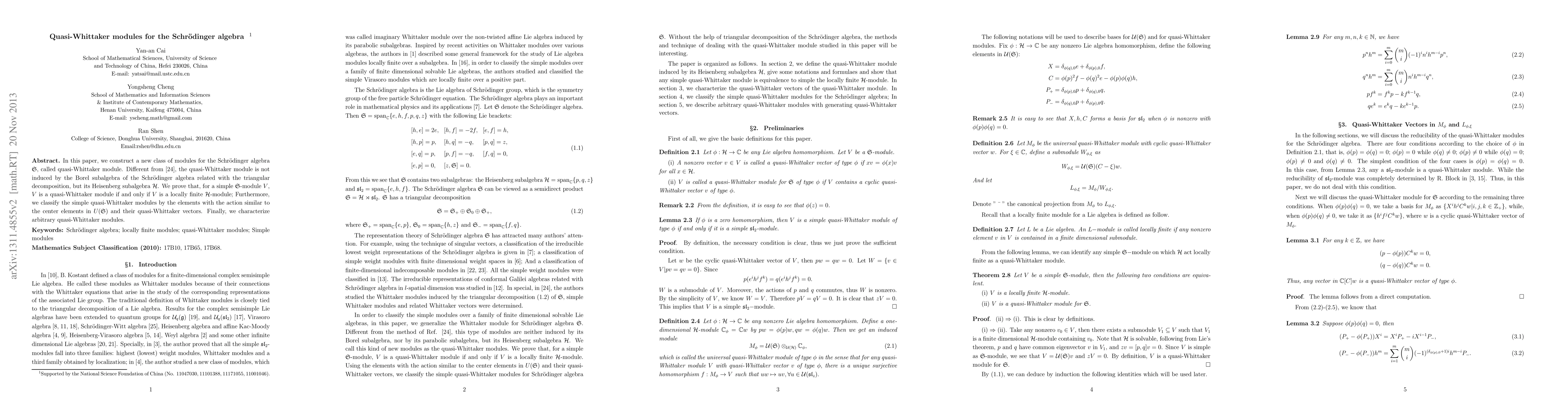 The paper constructs a new class of modules for the Schrödinger algebra, called quasi-Whittaker modules, using the Heisenberg subalgebra instead of the Borel subalgebra.