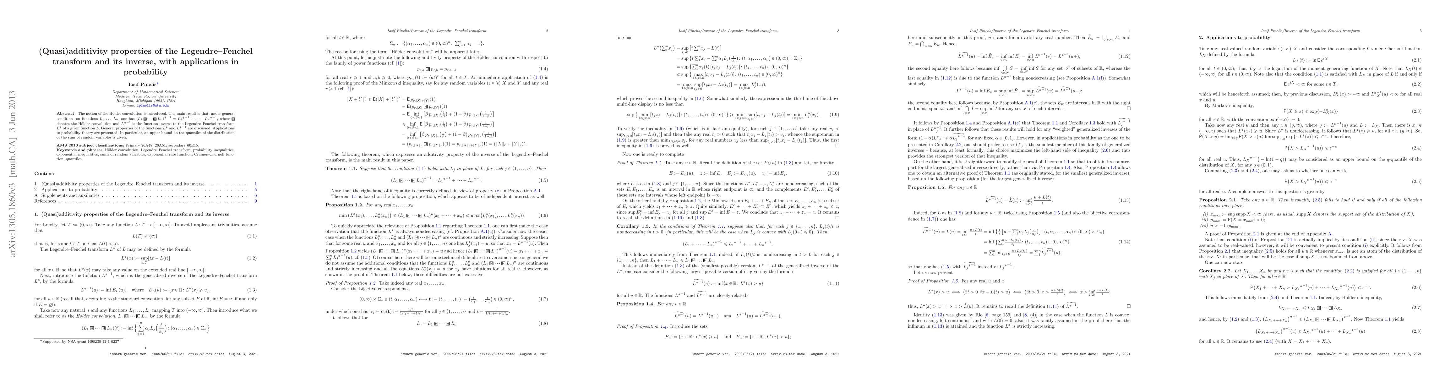 The notion of the H\"older convolution is introduced. The main result is that, under general conditions on functions L_1, ..., L_n, the function inverse to the Legendre--Fenchel transform of the H\"older convolution of L_1, ..., L_n coincides with the sum of the inverses of the Legendre--Fenchel transforms of the individual functions L_1, ..., L_n. Applications to probability theory are presented. In particular, an upper bound on the quantiles of the distribution of the sum of random variables is given.