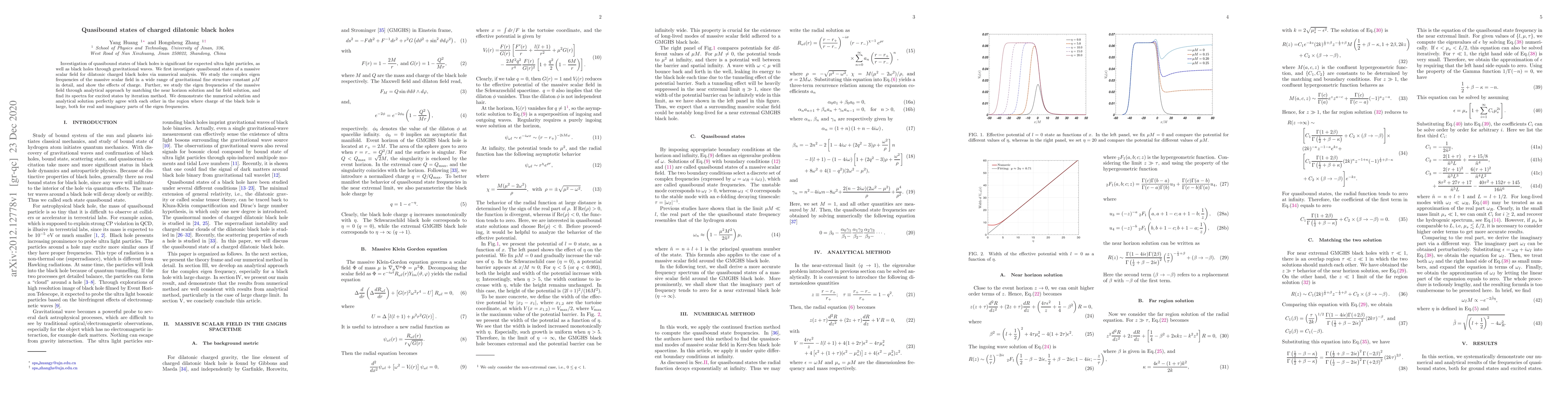 The paper presents a comprehensive study of quasibound states of charged dilatonic black holes using both numerical and analytical methods, demonstrating excellent agreement between the two approaches and revealing the behavior of the frequencies in the extremal limit.