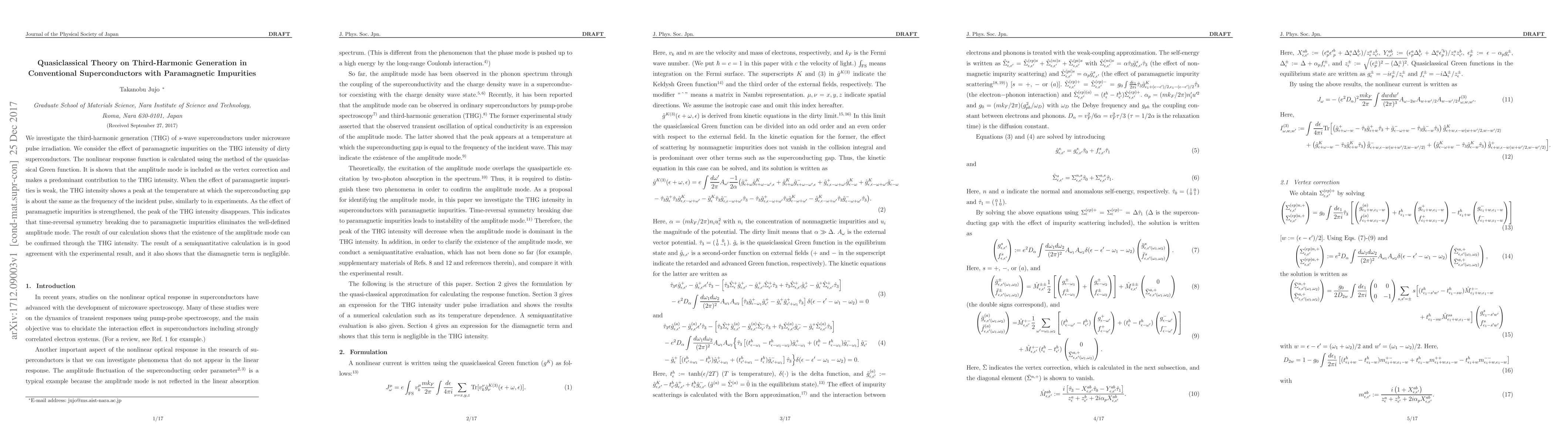 This paper explores third-harmonic generation in s-wave superconductors with paramagnetic impurities under microwave pulses, revealing that the amplitude mode significantly influences THG intensity. The study finds that paramagnetic impurities disrupt the THG peak, indicating the elimination of the amplitude mode due to symmetry breaking.