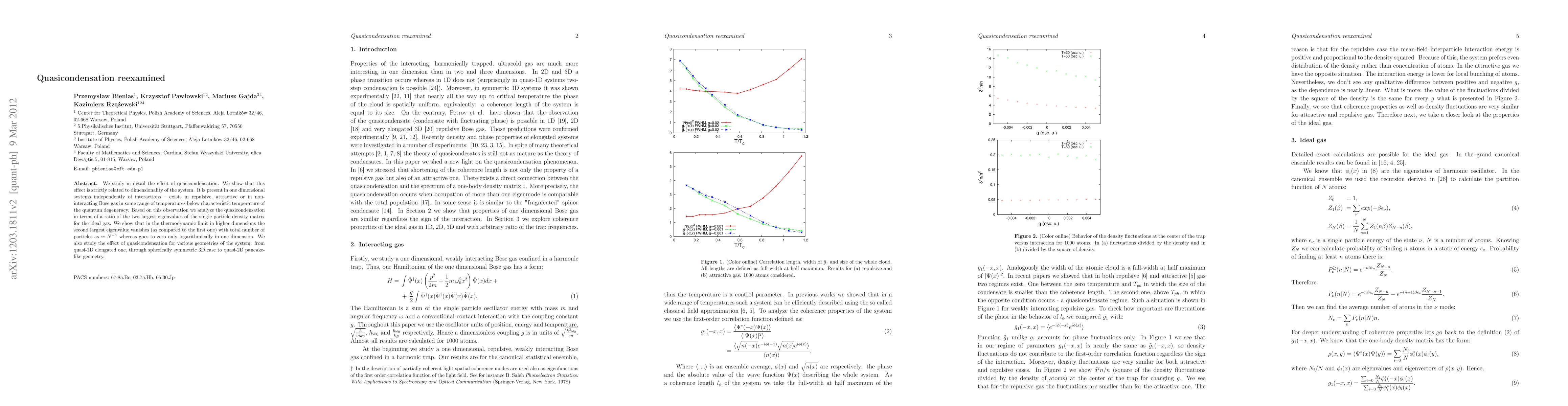 Researchers examine quasicondensation, a phenomenon related to dimensionality in systems, finding it vanishes with N^{-rac{1}{2}} in higher dimensions and only logarithmically in one dimension.