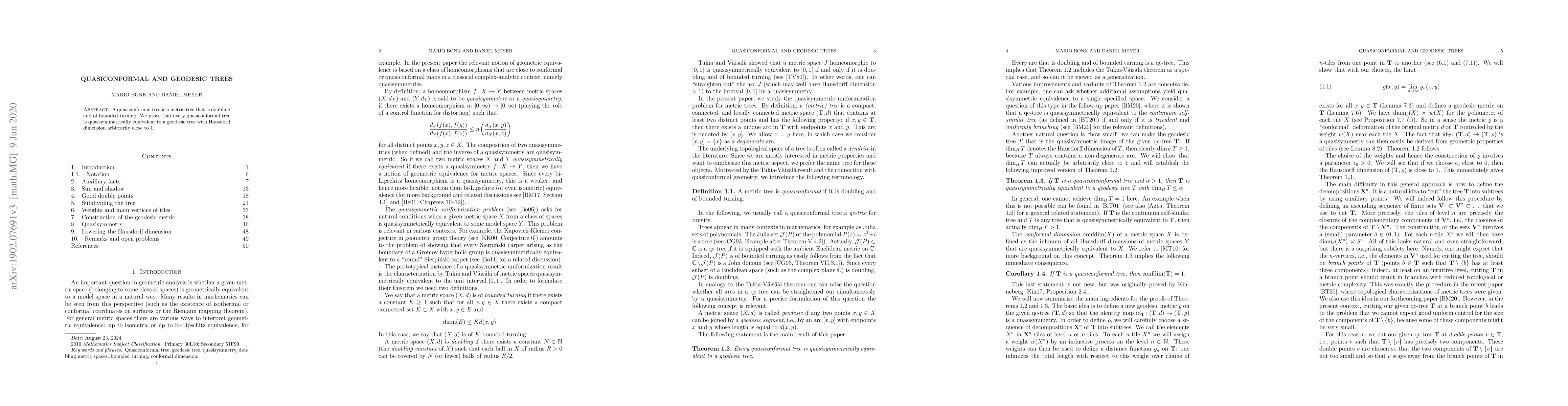 Summary: This paper proves that any quasiconformal tree, a type of metric tree with specific geometric properties, is quasisymmetrically equivalent to a geodesic tree, with its Hausdorff dimension approaching 1. This establishes a strong connection between quasiconformal and geodesic trees.