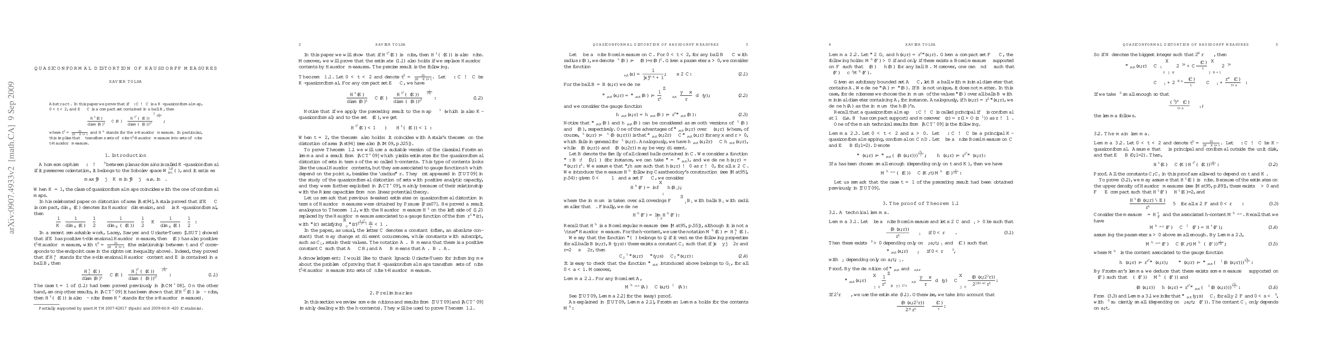 This paper demonstrates that K-quasiconformal maps in the plane preserve finite Hausdorff measures between dimensions 0<t<2, establishing a quantitative transformation relationship between (t')-Hausdorff and t-Hausdorff measures. The result is quantified by a bound involving the constant C(K).