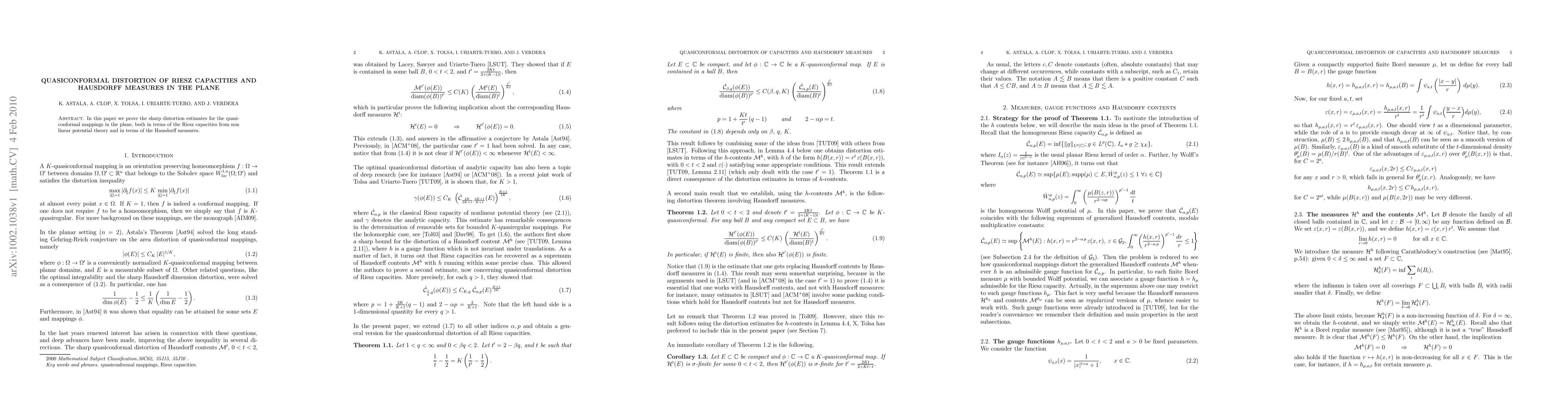 Summary: This paper establishes precise distortion bounds for quasiconformal mappings in the plane concerning Riesz capacities and Hausdorff measures, providing significant insights into their geometric properties.