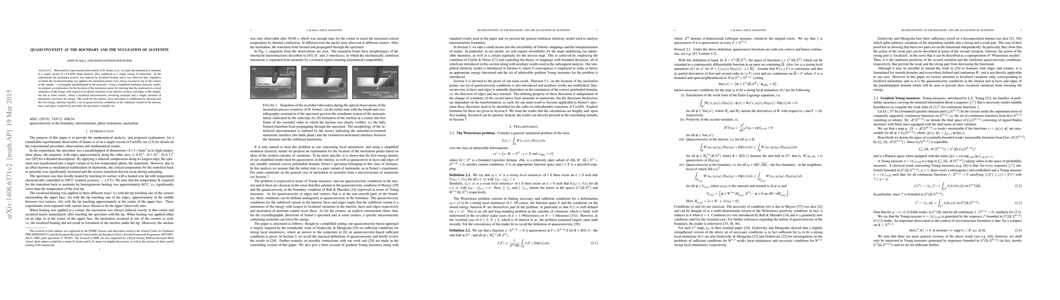 This paper investigates the nucleation of austenite in a CuAlNi shape-memory alloy under localized heating, finding that nucleation occurs at the corners of the sample. It explains this phenomenon using quasiconvexity conditions in a simplified nonlinear elasticity model, showing that martensite minimizes energy except at corners where a laminate microstructure can lower it further.
