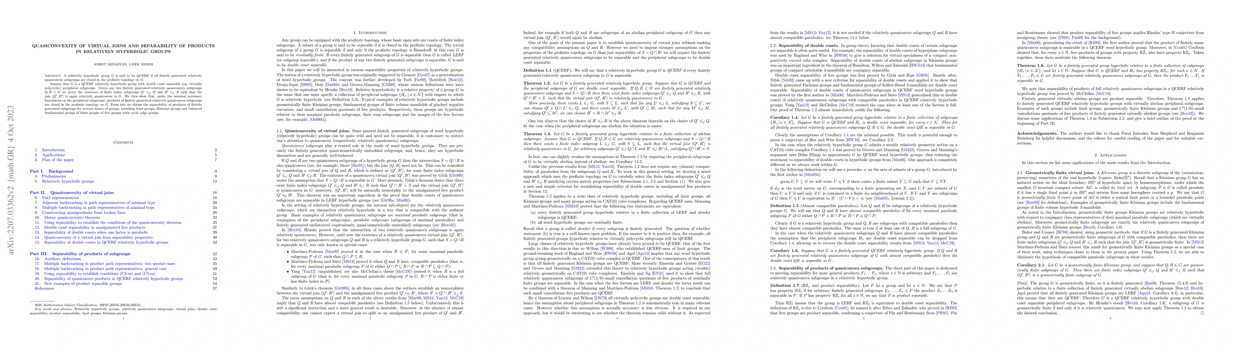This paper proves the quasiconvexity of virtual joins and the separability of products of finitely generated relatively quasiconvex subgroups in QCERF relatively hyperbolic groups with double coset separable peripheral subgroups, leading to separability results for various classes of groups like limit groups and Kleinian groups.