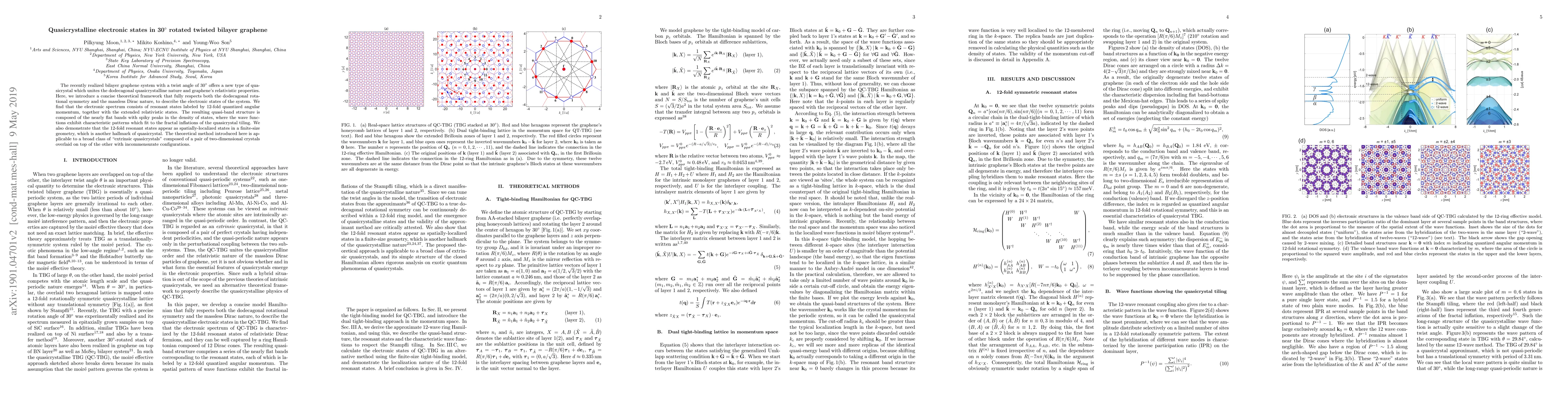 This paper introduces a theoretical framework to describe the electronic states in a $30^\circ$ rotated twisted bilayer graphene system, revealing quasicrystalline electronic states characterized by 12-fold quantized angular momentum and fractal-like wave functions. The method is applicable to a wide range of extrinsic quasicrystals.