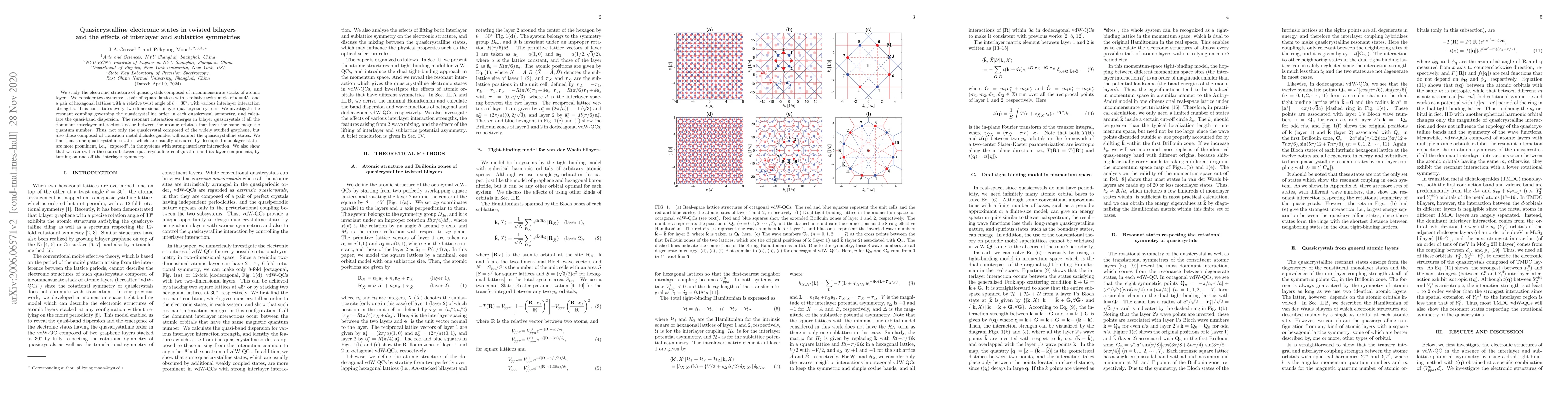 We study the electronic structure of quasicrystals composed of incommensurate stacks of atomic layers. We consider two systems: a pair of square lattices with a relative twist angle of $\theta=45^\circ$ and a pair of hexagonal lattices with a relative twist angle of $\theta=30^\circ$, with various interlayer interaction strengths. This constitutes every two-dimensional bilayer quasicrystal system. We investigate the resonant coupling governing the quasicrystalline order in each quasicrystal symmetry, and calculate the quasi-band dispersion. The resonant interaction emerges in bilayer quasicrystals if all the dominant interlayer interactions occur between the atomic orbitals that have the same magnetic quantum number. Thus, not only the quasicrystal composed of the widely studied graphene, but also those composed of transition metal dichalcogenides will exhibit the quasicrystalline states. We find that some quasicrystalline states, which are usually obscured by decoupled monolayer states, are more prominent, i.e., "exposed", in the systems with strong interlayer interaction. We also show that we can switch the states between quasicrystalline configuration and its layer components, by turning on and off the interlayer symmetry.