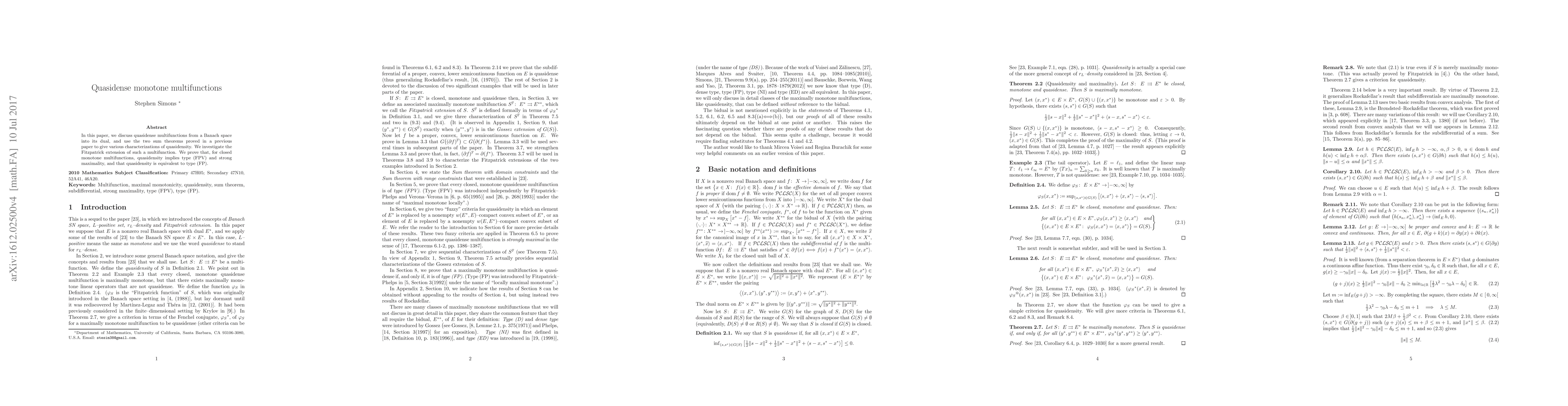 This paper explores quasidense monotone multifunctions from a Banach space to its dual, utilizing previously established sum theorems to characterize quasidensity. It demonstrates that quasidensity in closed monotone multifunctions implies type (FPV) and strong maximality, and is equivalent to type (FP).