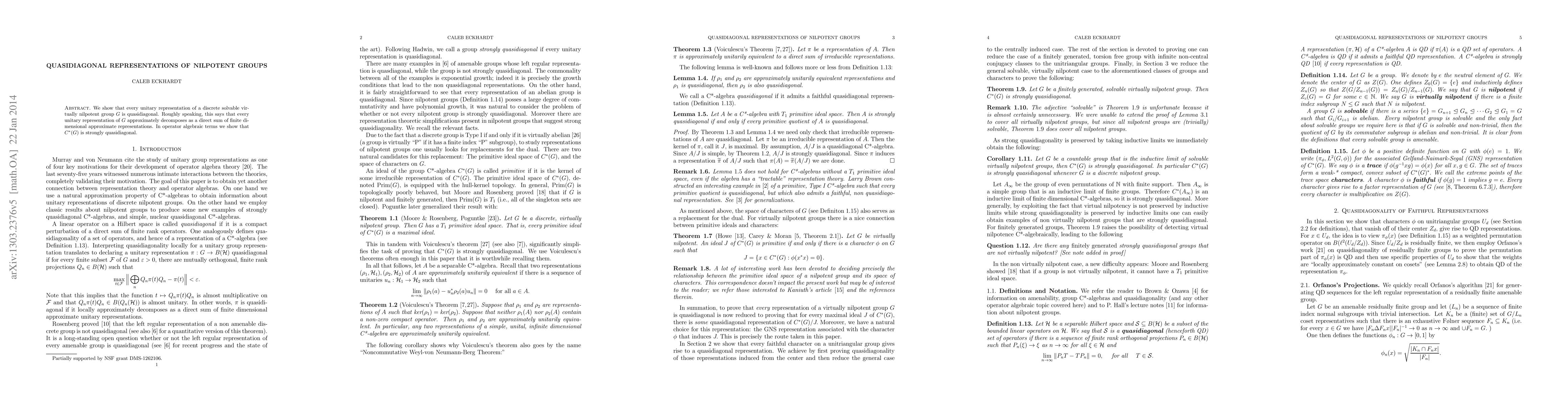 Summary: This paper demonstrates that any unitary representation of a solvable discrete virtually nilpotent group is quasidiagonal, implying that the associated group C*-algebra is strongly quasidiagonal. This reveals an approximate decomposition into finite-dimensional representations.
