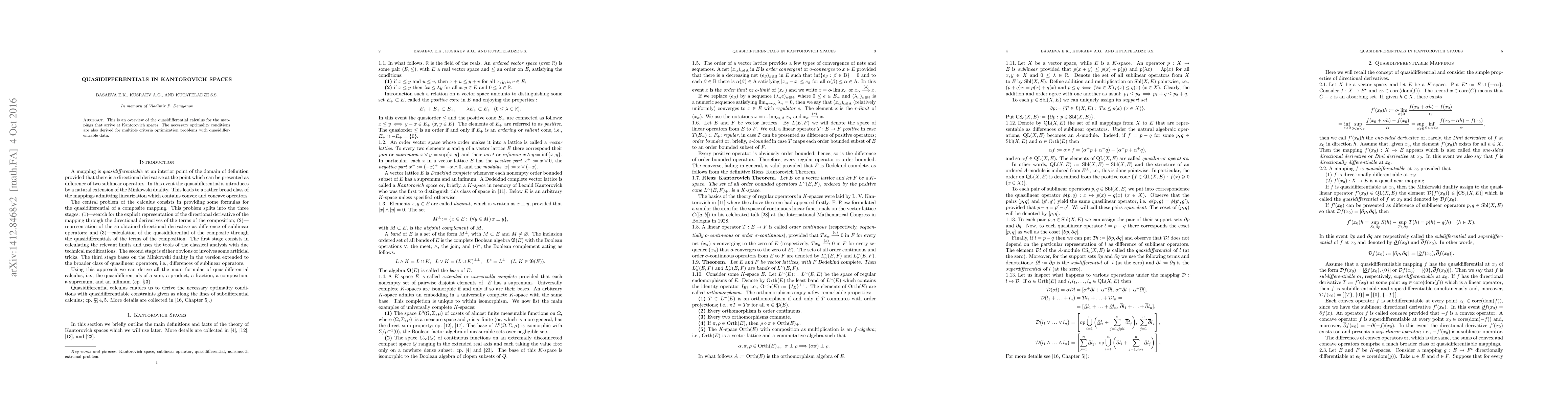 This is an overview of the quasidifferential calculus for the mappings that arrive at Kantorovich spaces. The necessary optimality conditions are also derived for multiple criteria optimization problems with quasidifferentiable data.
