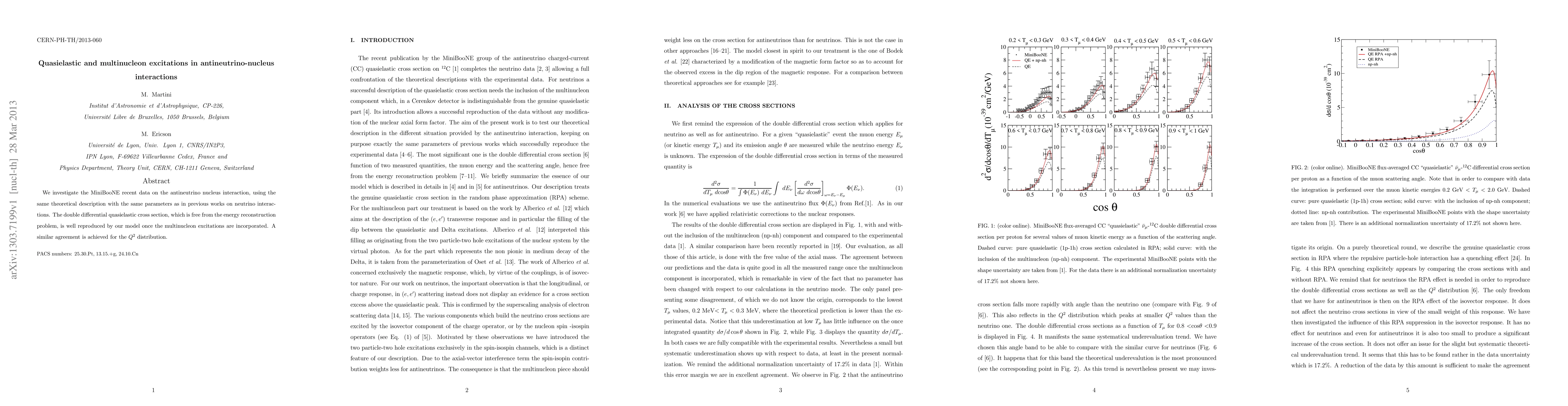 We investigate the MiniBooNE recent data on the antineutrino nucleus interaction, using the same theoretical description with the same parameters as in previous works on neutrino interactions. The double differential quasielastic cross section, which is free from the energy reconstruction problem, is well reproduced by our model once the multinucleon excitations are incorporated. A similar agreement is achieved for the Q^2 distribution.