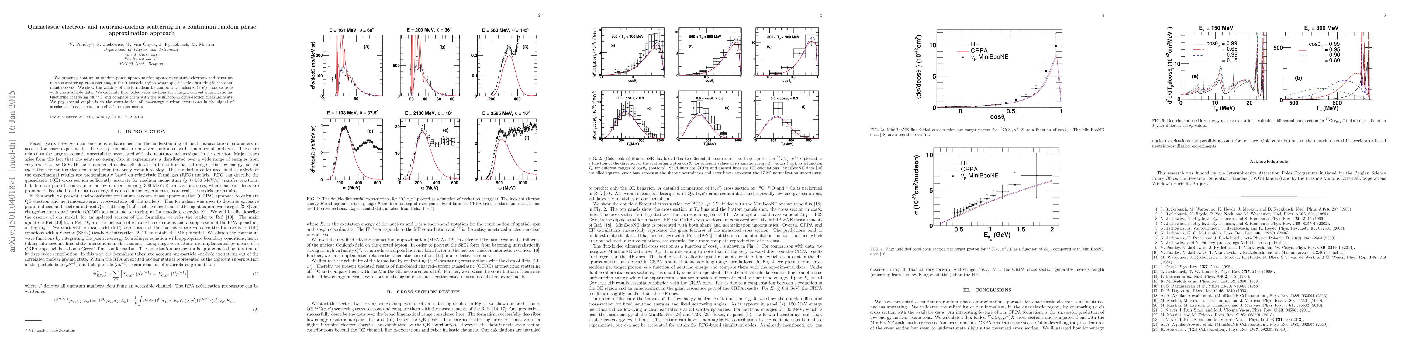 This paper introduces a continuum random phase approximation to analyze quasielastic electron- and neutrino-nucleus scattering, focusing on the kinematic region where quasielastic scattering dominates. The approach is validated by comparing calculated inclusive cross sections with experimental data and flux-folded cross sections for antineutrino-nucleus interactions with MiniBooNE measurements, highlighting the role of low-energy nuclear excitations in neutrino oscillation experiments.