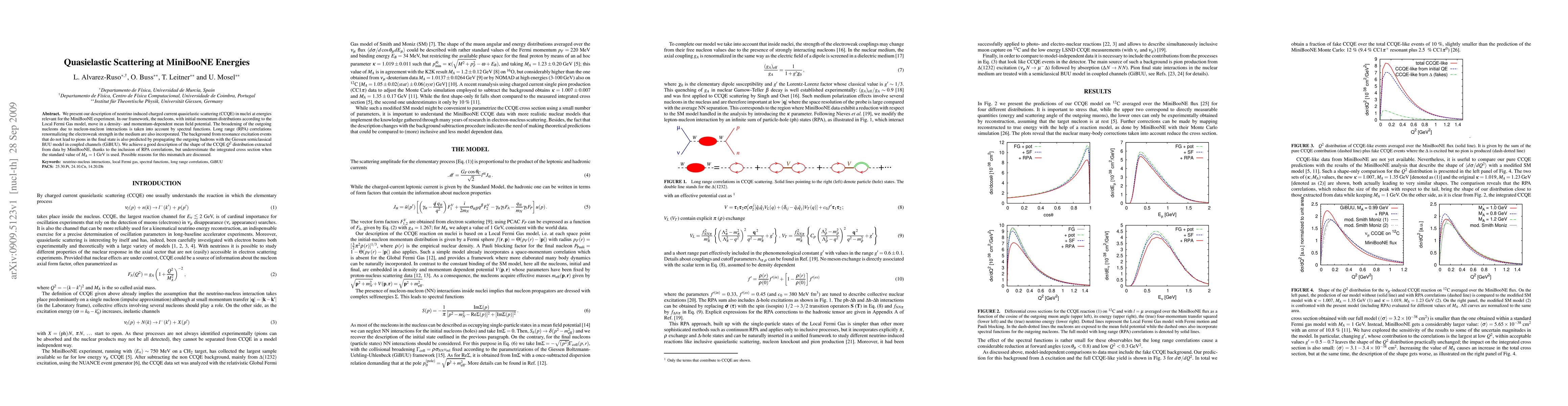 Researchers describe a new framework for neutrino-induced charged current quasielastic scattering in nuclei at MiniBooNE energies, achieving good agreement on the Q2 distribution but underestimating the integrated cross section when using standard values.