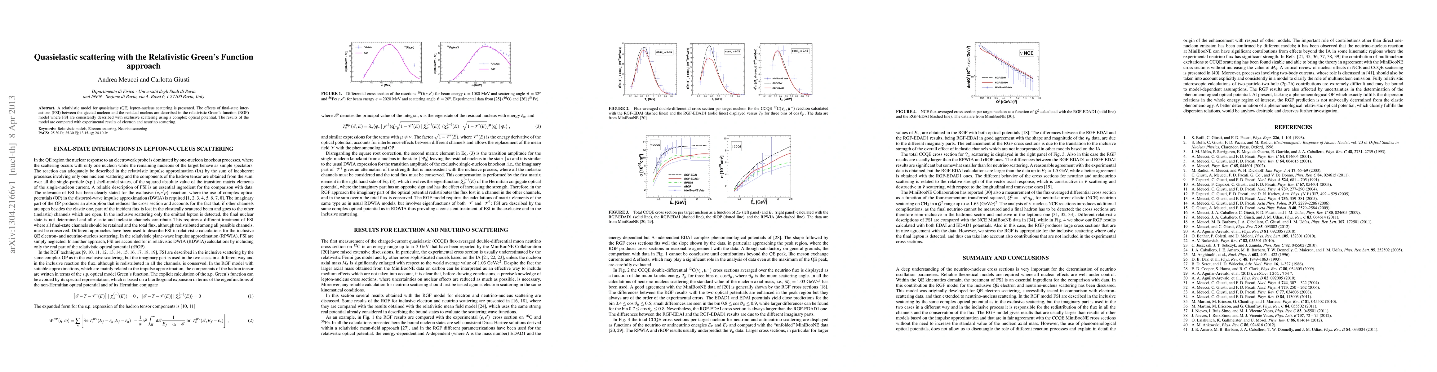 This paper presents a relativistic model for quasielastic lepton-nucleus scattering, utilizing the Relativistic Green's Function approach to describe final-state interactions, and compares its results with experimental data from electron and neutrino scattering experiments.