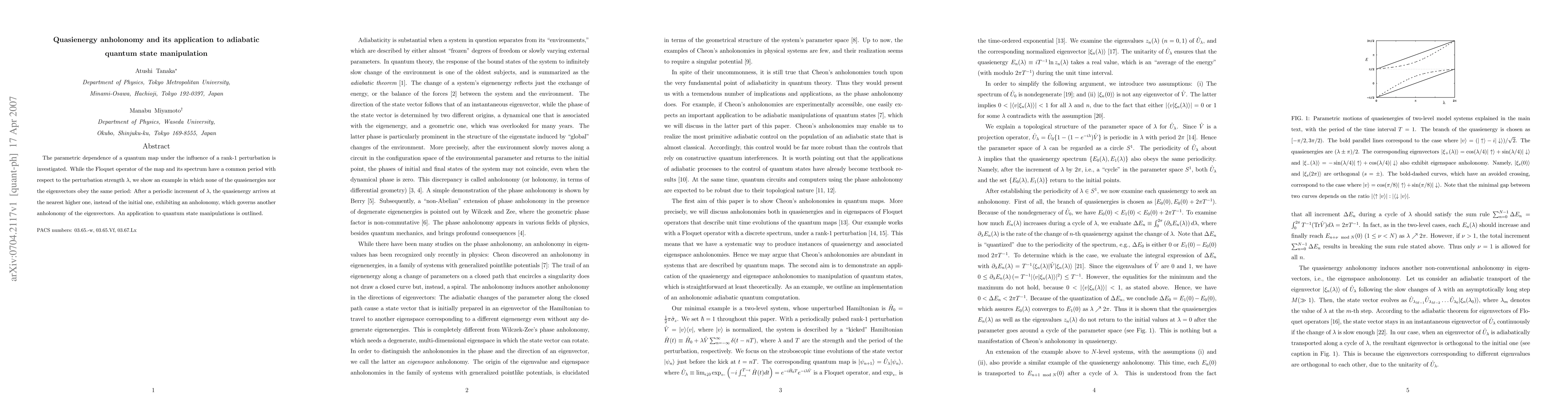 The parametric dependence of a quantum map under the influence of a rank-1 perturbation is investigated. While the Floquet operator of the map and its spectrum have a common period with respect to the perturbation strength $\lambda$, we show an example in which none of the quasienergies nor the eigenvectors obey the same period: After a periodic increment of $\lambda$, the quasienergy arrives at the nearest higher one, instead of the initial one, exhibiting an anholonomy, which governs another anholonomy of the eigenvectors. An application to quantum state manipulations is outlined.