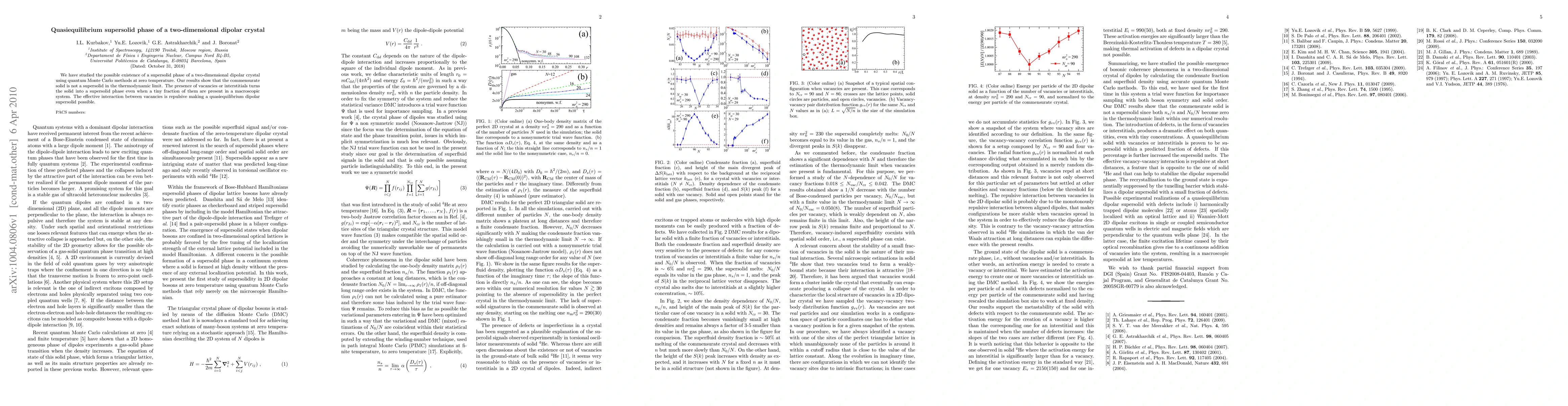 This research investigates the existence of a supersolid phase in a two-dimensional dipolar crystal using quantum Monte Carlo methods at zero temperature. It finds that while a perfect solid is not supersolid, the introduction of even a small fraction of vacancies or interstitials transforms it into a quasiequilibrium supersolid phase due to repulsive effective interactions between vacancies.