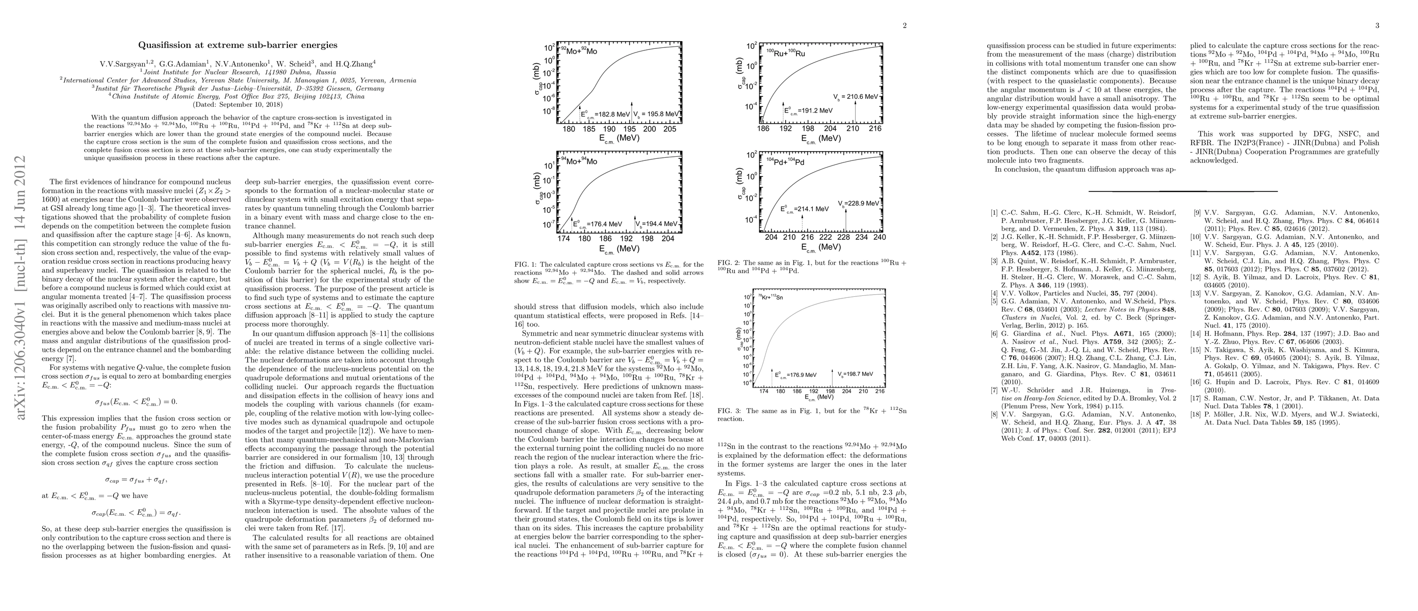 With the quantum diffusion approach the behavior of the capture cross-section is investigated in the reactions $^{92,94}$Mo + $^{92,94}$Mo, $^{100}$Ru + $^{100}$Ru, $^{104}$Pd + $^{104}$Pd, and $^{78}$Kr + $^{112}$Sn at deep sub-barrier energies which are lower than the ground state energies of the compound nuclei. Because the capture cross section is the sum of the complete fusion and quasifission cross sections, and the complete fusion cross section is zero at these sub-barrier energies, one can study experimentally the unique quasifission process in these reactions after the capture.