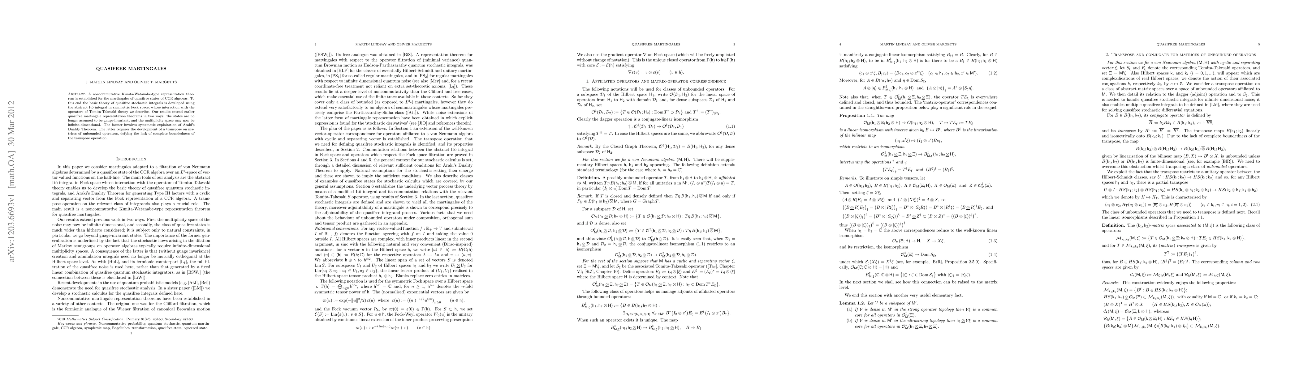 A noncommutative Kunita-Watanabe-type representation theorem is established for the martingales of quasifree states of CCR algebras. To this end the basic theory of quasifree stochastic integrals is developed using the abstract It\^o integral in symmetric Fock space, whose interaction with the operators of Tomita-Takesaki theory we describe. Our results extend earlier quasifree martingale representation theorems in two ways: the states are no longer assumed to be gauge-invariant, and the multiplicity space may now be infinite-dimensional. The former involves systematic exploitation of Araki's Duality Theorem. The latter requires the development of a transpose on matrices of unbounded operators, defying the lack of complete boundedness of the transpose operation.