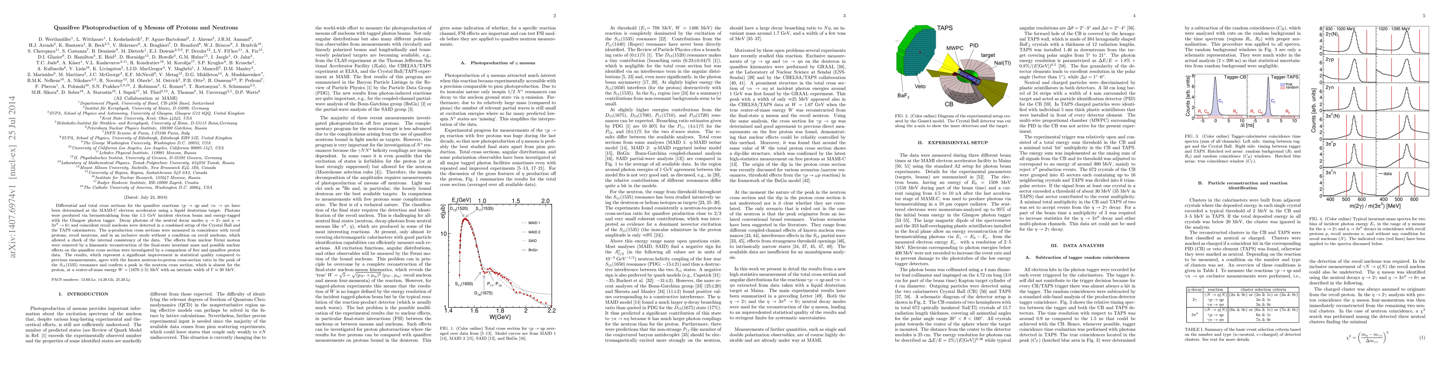 Differential and total cross sections for the quasifree reactions $\gamma p\rightarrow\eta p$ and $\gamma n\rightarrow\eta n$ have been determined at the MAMI-C electron accelerator using a liquid deuterium target. Photons were produced via bremsstrahlung from the 1.5 GeV incident electron beam and energy-tagged with the Glasgow photon tagger. Decay photons of the neutral decay modes $\eta\rightarrow 2\gamma$ and $\eta\rightarrow 3\pi^0 \rightarrow 6\gamma$ and coincident recoil nucleons were detected in a combined setup of the Crystal Ball and the TAPS calorimeters. The $\eta$-production cross sections were measured in coincidence with recoil protons, recoil neutrons, and in an inclusive mode without a condition on recoil nucleons, which allowed a check of the internal consistency of the data. The effects from nuclear Fermi motion were removed by a kinematic reconstruction of the final-state invariant mass and possible nuclear effects on the quasifree cross section were investigated by a comparison of free and quasifree proton data. The results, which represent a significant improvement in statistical quality compared to previous measurements, agree with the known neutron-to-proton cross-section ratio in the peak of the $S_{11}(1535)$ resonance and confirm a peak in the neutron cross section, which is absent for the proton, at a center-of-mass energy $W = (1670\pm 5)$ MeV with an intrinsic width of $\Gamma\approx 30$ MeV.