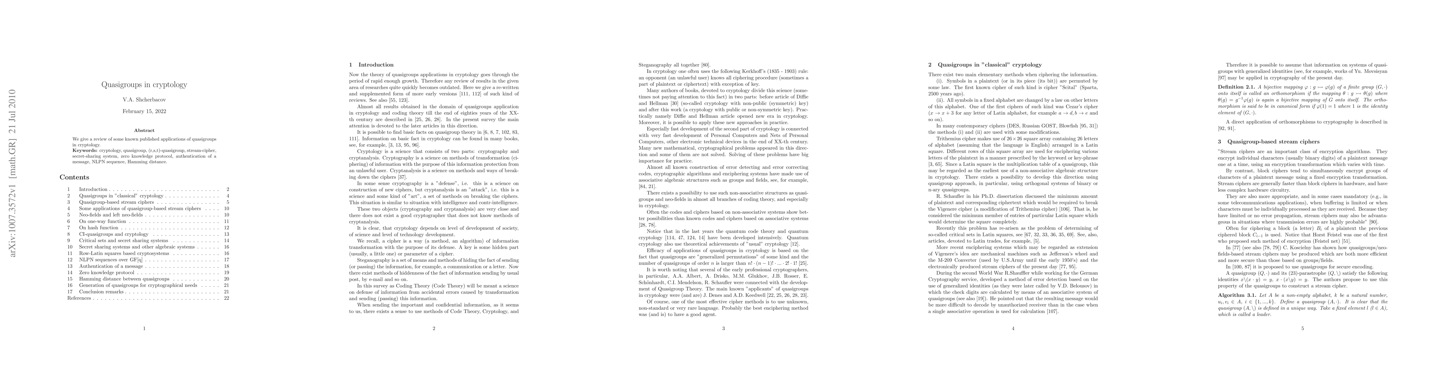 Summary: This paper reviews existing applications of quasigroup theory in cryptographic systems, highlighting their relevance and utility in enhancing security protocols.