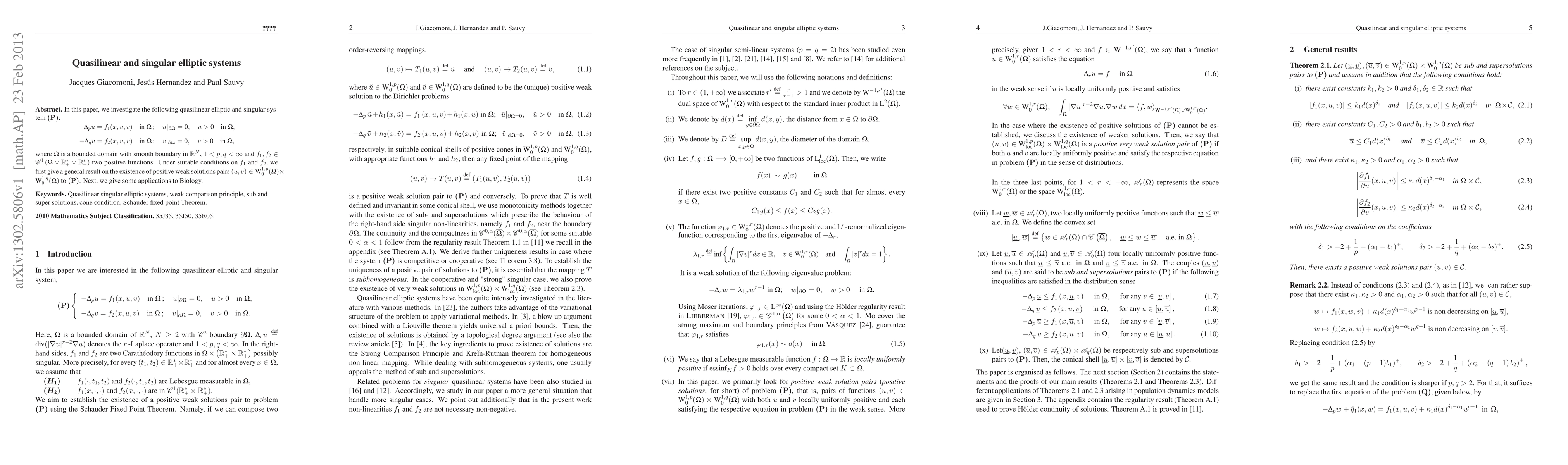 Summary: This paper explores the existence and uniqueness of solutions for quasilinear and singular elliptic systems using monotonicity methods, and applies these results to biological models.