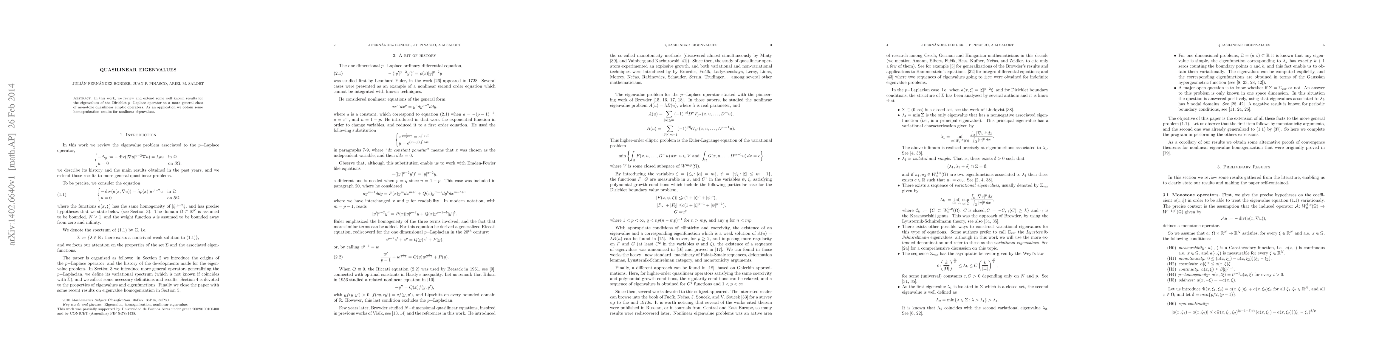 This paper reviews and extends results on eigenvalues of quasilinear elliptic operators, with applications to homogenization of nonlinear eigenvalues, and establishes a more general framework for monotone quasilinear operators.