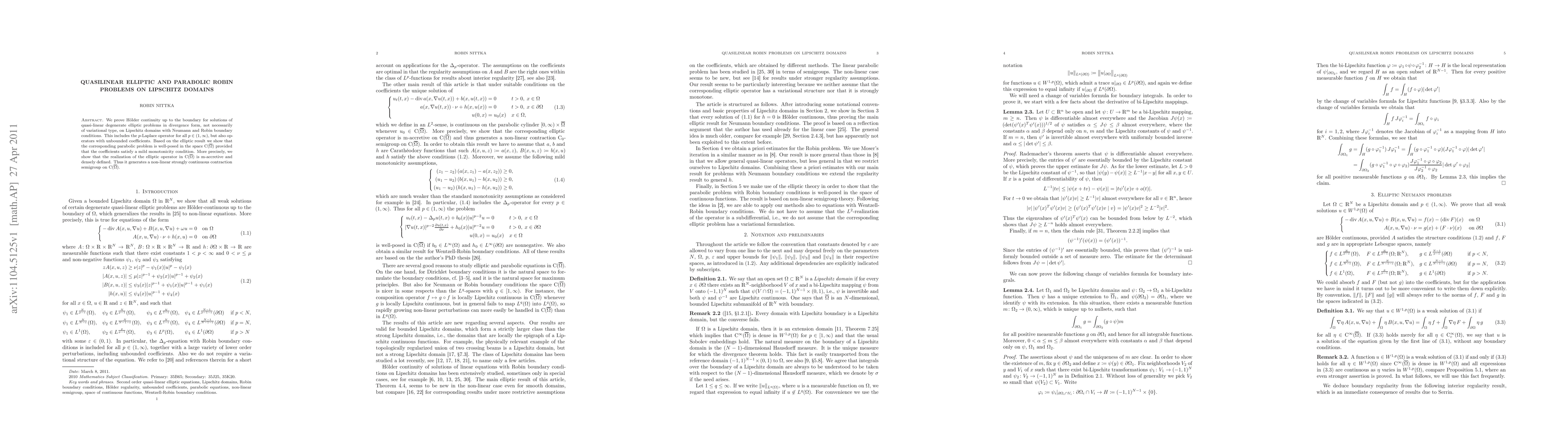 This paper proves H\"older continuity for solutions of quasi-linear degenerate elliptic problems on Lipschitz domains with Neumann and Robin boundary conditions. It also establishes well-posedness for the corresponding parabolic problem in $C(\bar{\Omega})$ under mild coefficient conditions.