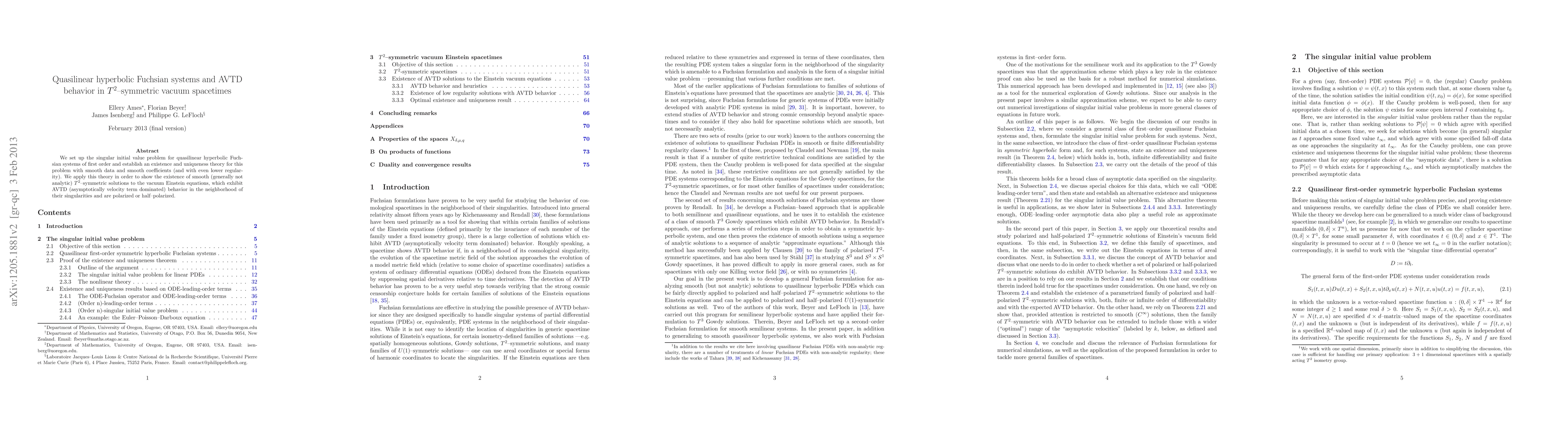 This paper establishes an existence and uniqueness theory for quasilinear hyperbolic Fuchsian systems, then applies this theory to demonstrate the existence of smooth T2-symmetric solutions to vacuum Einstein equations exhibiting AVTD behavior near singularities.