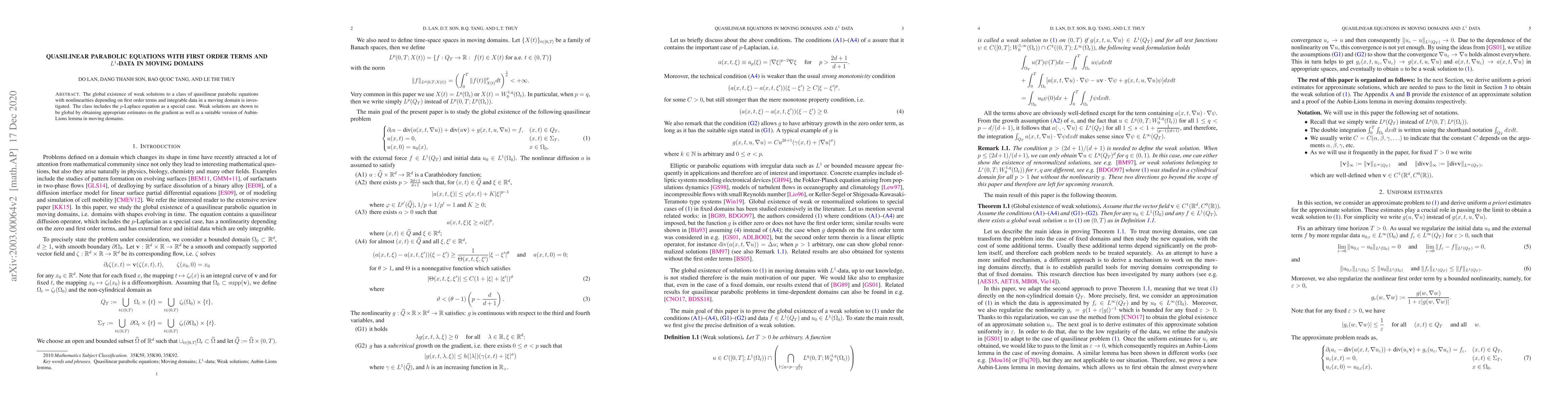 The novelty of this work lies in its extension to first-order terms and $L^1$-data in moving domains, providing a more general framework for analyzing quasilinear parabolic equations.