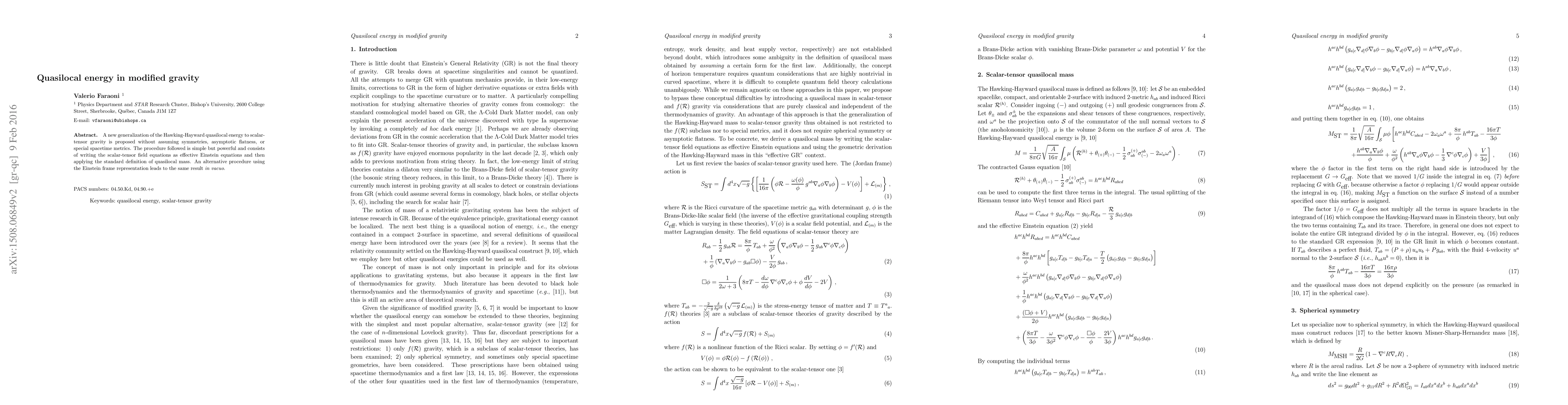 A new generalization of the Hawking-Hayward quasilocal energy to scalar-tensor gravity is proposed without assuming symmetries, asymptotic flatness, or special spacetime metrics. The procedure followed is simple but powerful and consists of writing the scalar-tensor field equations as effective Einstein equations and then applying the standard definition of quasilocal mass.