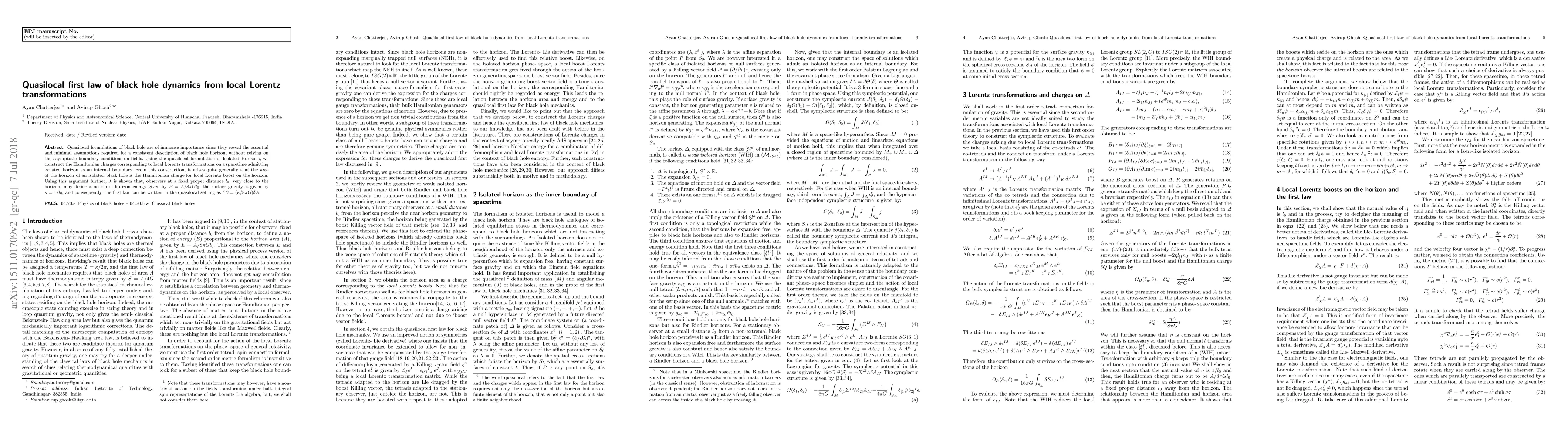 This paper constructs a quasilocal first law of black hole dynamics using local Lorentz transformations on isolated horizons. It shows that the horizon area is the Hamiltonian charge for local Lorentz boosts, leading to a quasilocal expression for the first law of black hole mechanics: $\delta E=(\kappa/8\pi G)\delta A$.