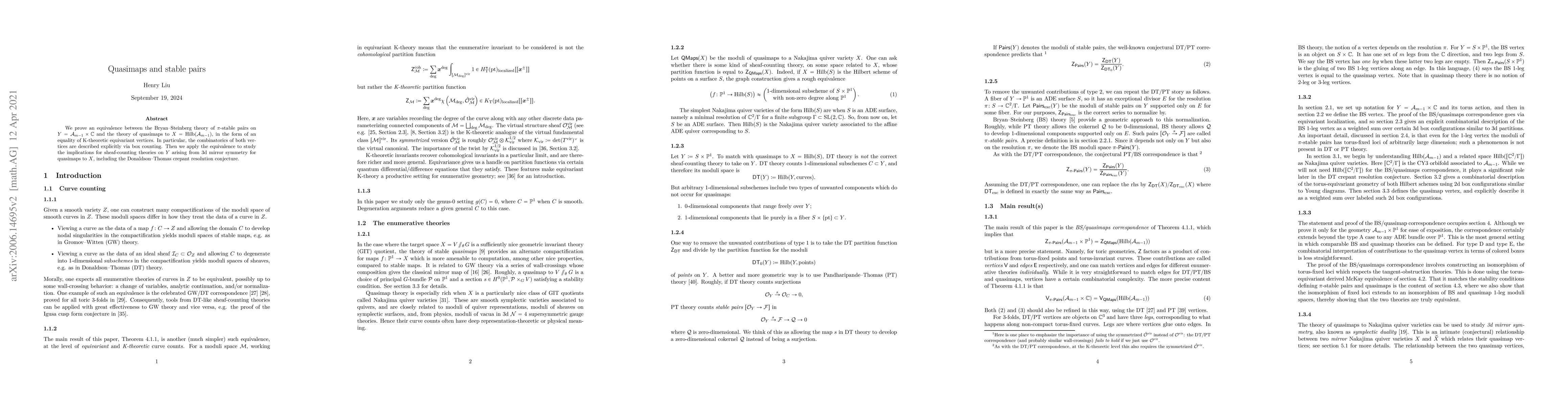 This paper establishes an equivalence between the Bryan-Steinberg theory of $\pi$-stable pairs on $Y$ and quasimaps to $X$, demonstrating their K-theoretic equivariant vertices are equal. The equivalence is used to explore sheaf-counting implications related to 3d mirror symmetry and the Donaldson-Thomas crepant resolution conjecture.