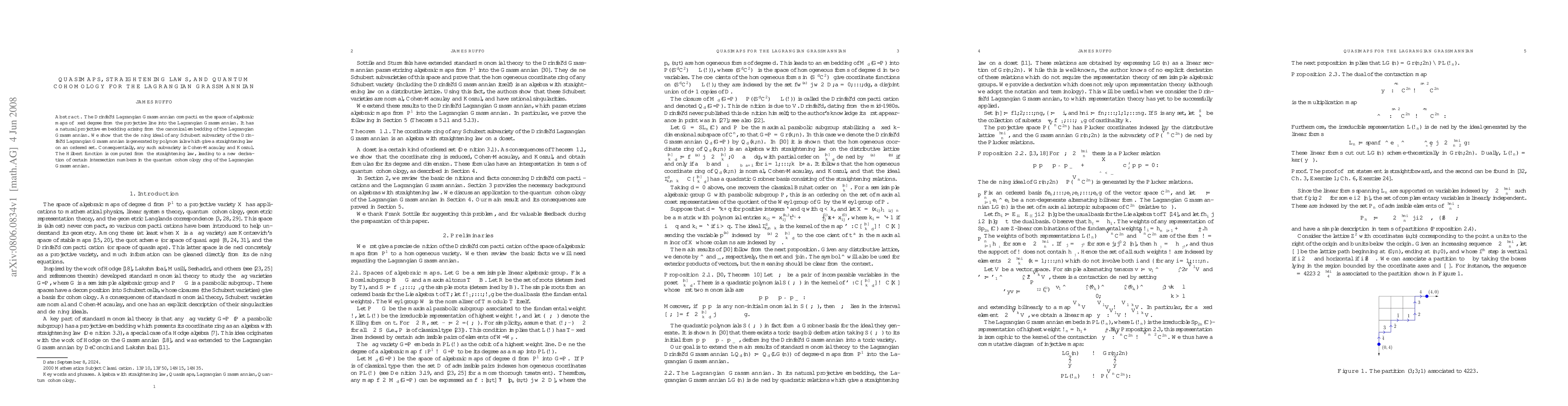 This paper explores quasimaps and straightening laws for the Drinfel'd Lagrangian Grassmannian, proving that Schubert subvarieties are Cohen-Macaulay and Koszul. It derives intersection numbers in the quantum cohomology ring using the straightening law.