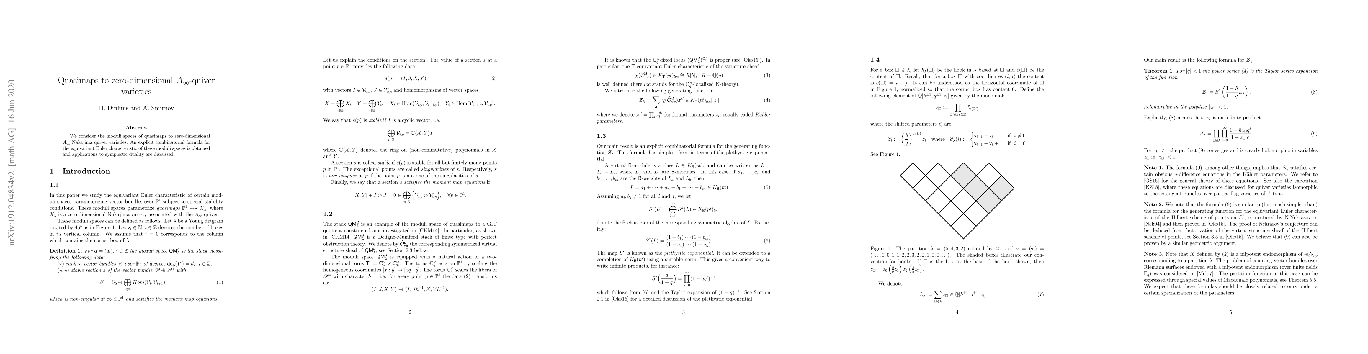 This paper derives an explicit combinatorial formula for the equivariant Euler characteristic of quasimaps to zero-dimensional $A_{\infty}$ Nakajima quiver varieties and explores its implications for symplectic duality.