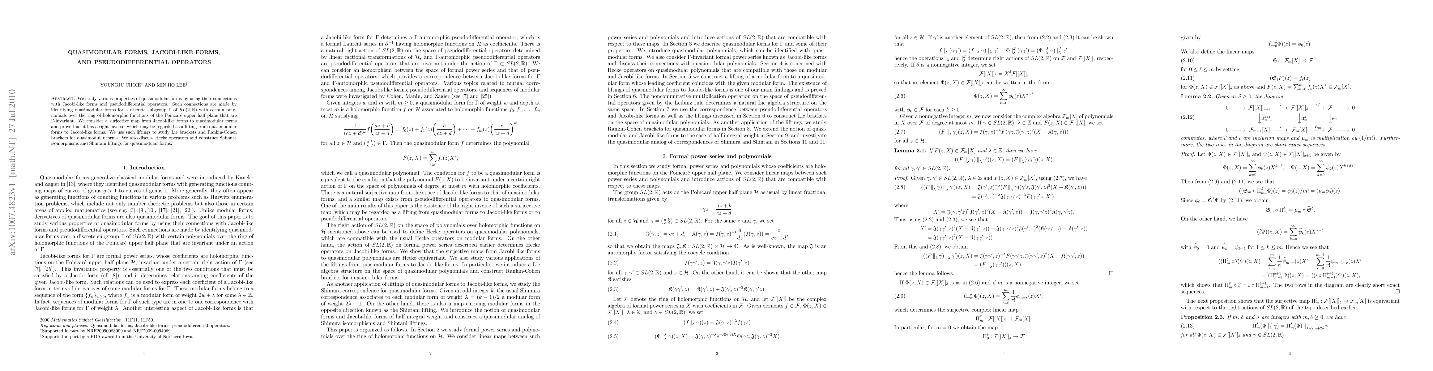 The novelty lies in the systematic use of pseudodifferential operators to connect quasimodular forms with Jacobi-like forms, the construction of Lie brackets on quasimodular forms, and the extension of Shimura and Shintani lifting results to half-integral weights.