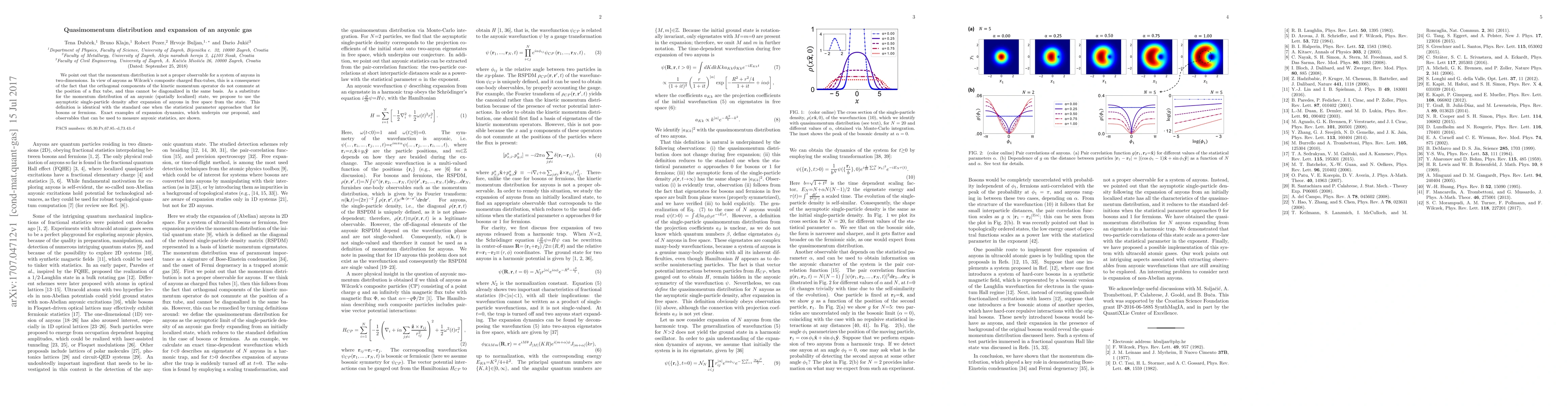 We point out that the momentum distribution is not a proper observable for a system of anyons in two-dimensions. In view of anyons as Wilczek's composite charged flux-tubes, this is a consequence of the fact that the orthogonal components of the kinetic momentum operator do not commute at the position of a flux tube, and thus cannot be diagonalized in the same basis. As a substitute for the momentum distribution of an anyonic (spatially localized) state, we propose to use the asymptotic single-particle density after expansion of anyons in free space from the state. This definition is identical with the standard one when the statistical parameter approaches that for bosons or fermions. Exact examples of expansion dynamics, which underpin our proposal, and observables that can be used to measure anyonic statistics, are shown.