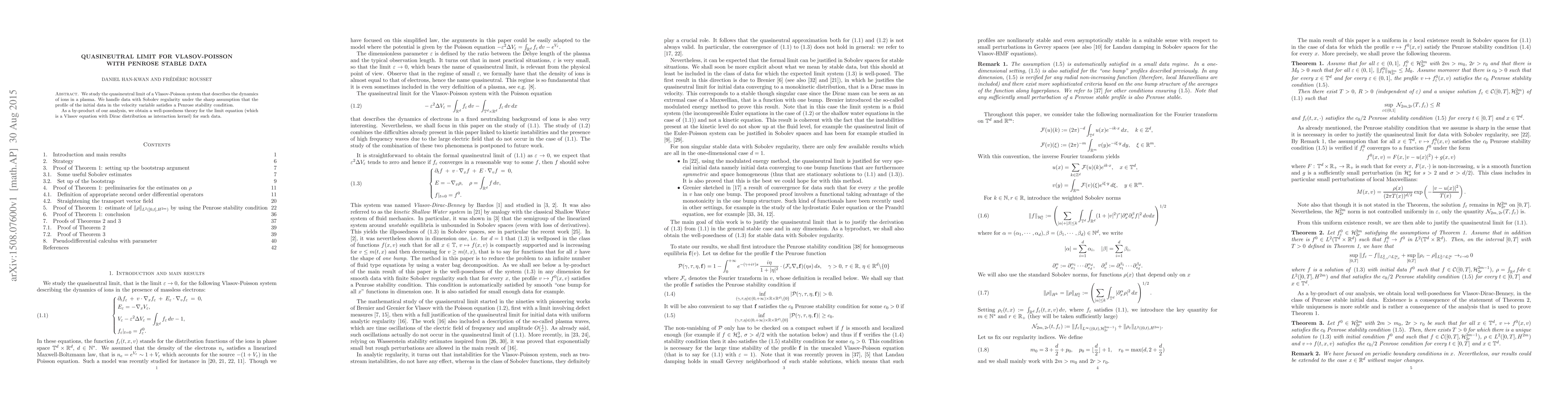 This paper investigates the quasineutral limit of the Vlasov-Poisson system for plasma ion dynamics, focusing on initial data satisfying a Penrose stability condition. It establishes well-posedness for the resulting Vlasov equation with a Dirac distribution interaction kernel.