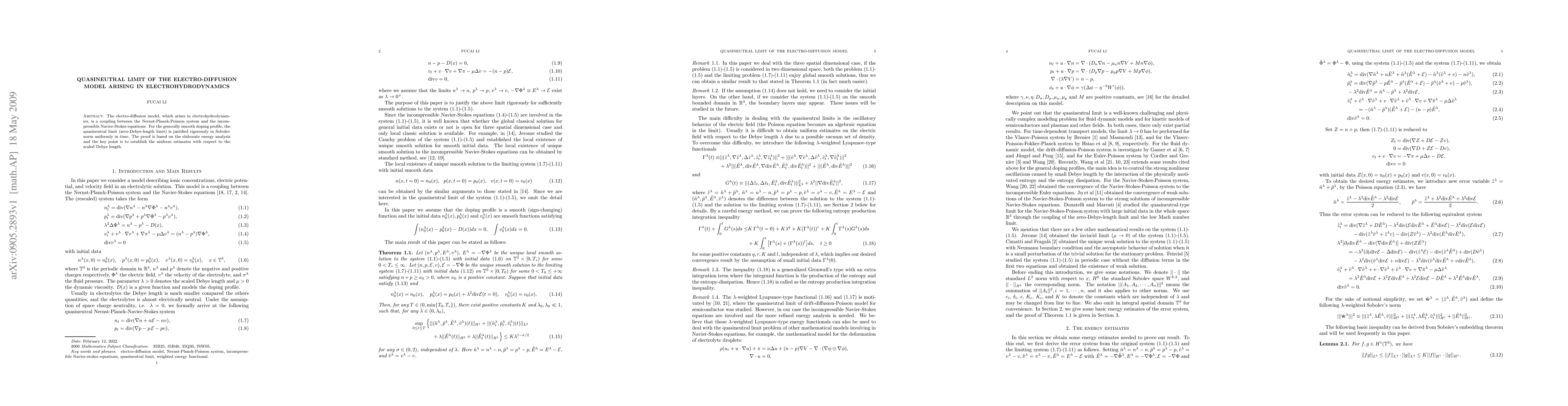 The electro-diffusion model, which arises in electrohydrodynamics, is a coupling between the Nernst-Planck-Poisson system and the incompressible Navier-Stokes equations. For the generally smooth doping profile, the quasineutral limit (zero-Debye-length limit) is justified rigorously in Sobolev norm uniformly in time. The proof is based on the elaborate energy analysis and the key point is to establish the uniform estimates with respect to the scaled Debye length.