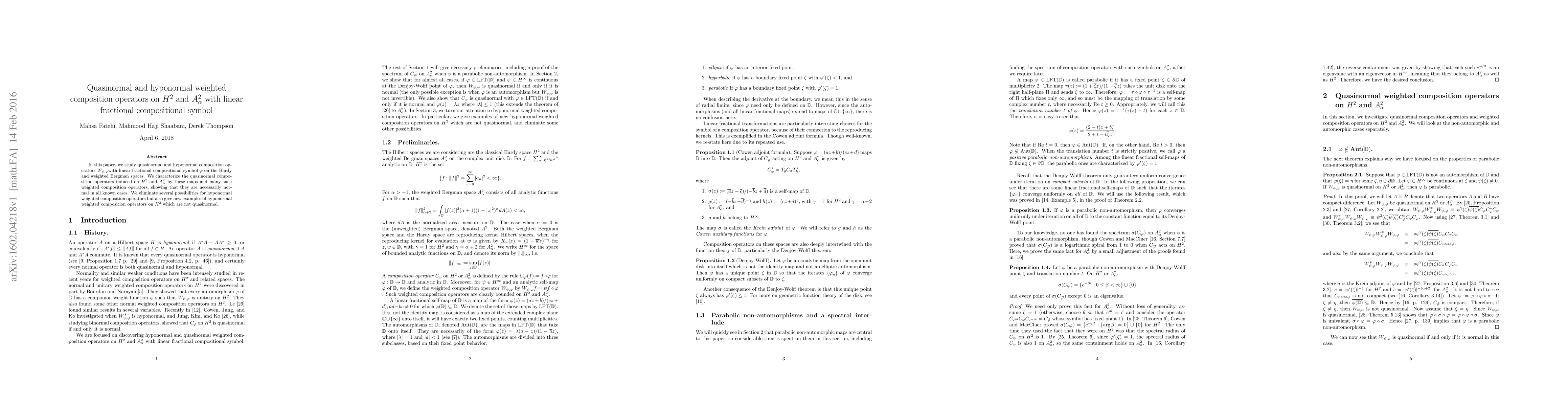 In this paper, we study quasinormal and hyponormal composition operators \W with linear fractional compositional symbol $\ph$ on the Hardy and weighted Bergman spaces. We characterize the quasinormal composition operators induced on $H^{2}$ and $A_{\alpha}^{2}$ by these maps and many such weighted composition operators, showing that they are necessarily normal in all known cases. We eliminate several possibilities for hyponormal weighted composition operators but also give new examples of hyponormal weighted composition operators on $H^2$ which are not quasinormal.