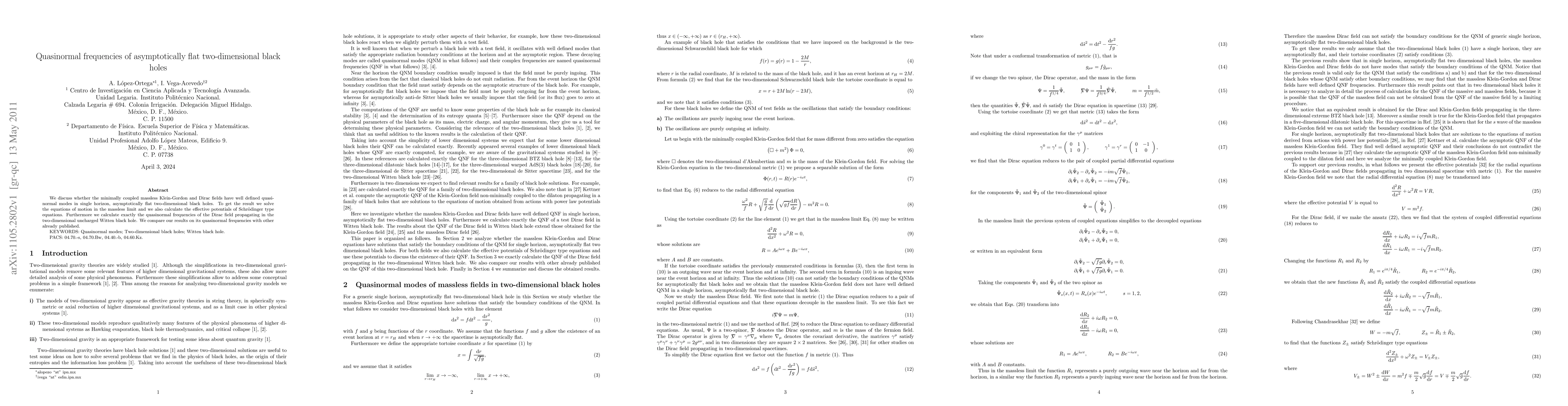 This paper investigates the quasinormal modes of massless Klein-Gordon and Dirac fields in two-dimensional, asymptotically flat black holes, solving the equations of motion and calculating the effective potentials. It finds exact quasinormal frequencies for the Dirac field in the Witten black hole and compares these results with previously published findings.