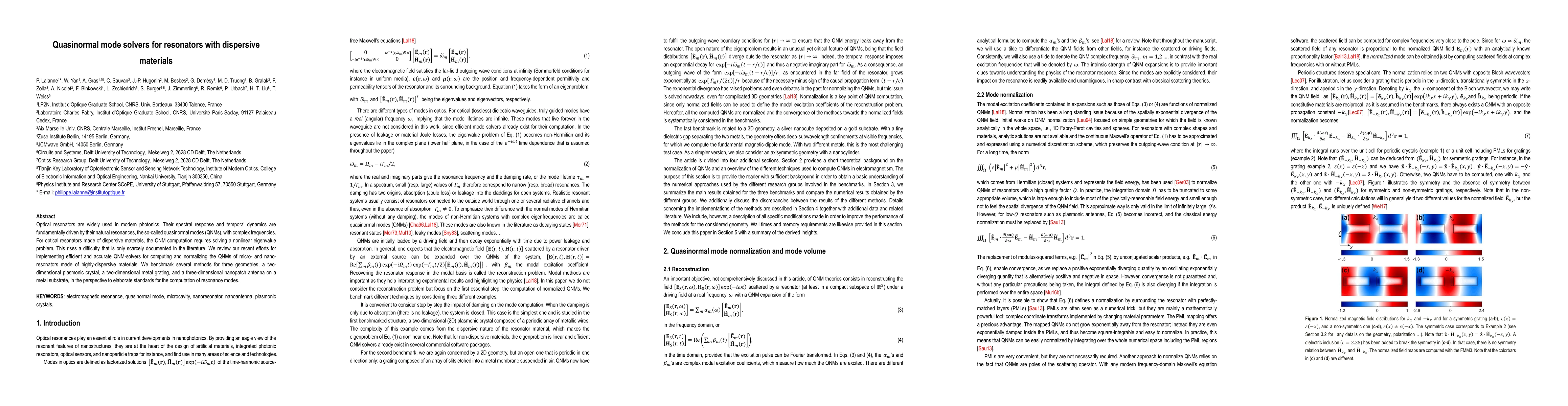 This paper reviews recent advancements in solvers for computing quasinormal modes (QNMs) in optical resonators made from dispersive materials. The authors benchmark several QNM-solving methods for three specific geometries to establish standards for resonance mode computation.