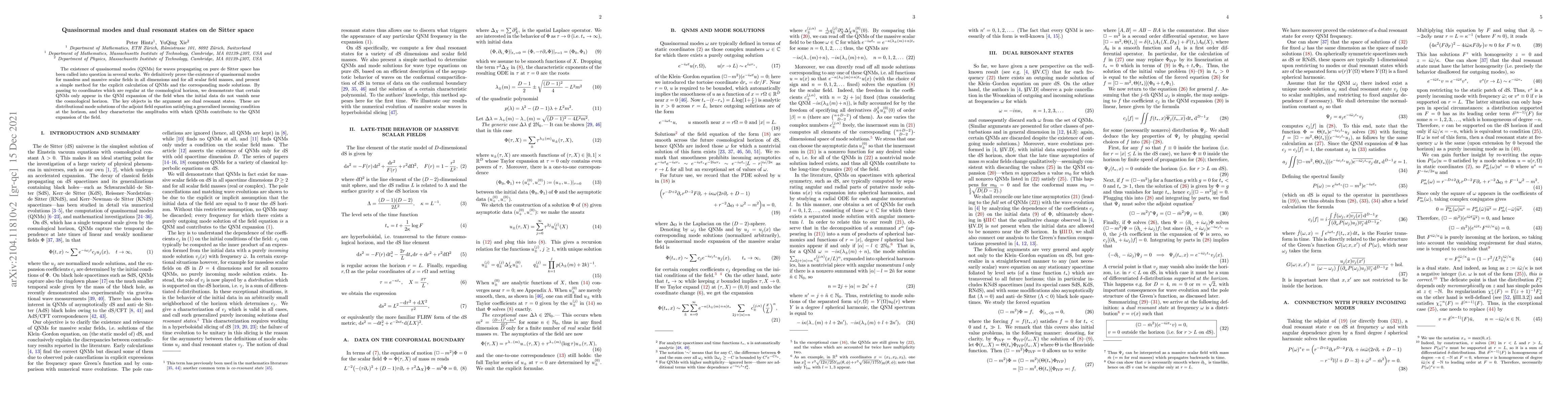 The paper proves the existence of quasinormal modes for scalar fields on de Sitter space in all dimensions and masses, with a method for explicit calculation and implications for initial data conditions.