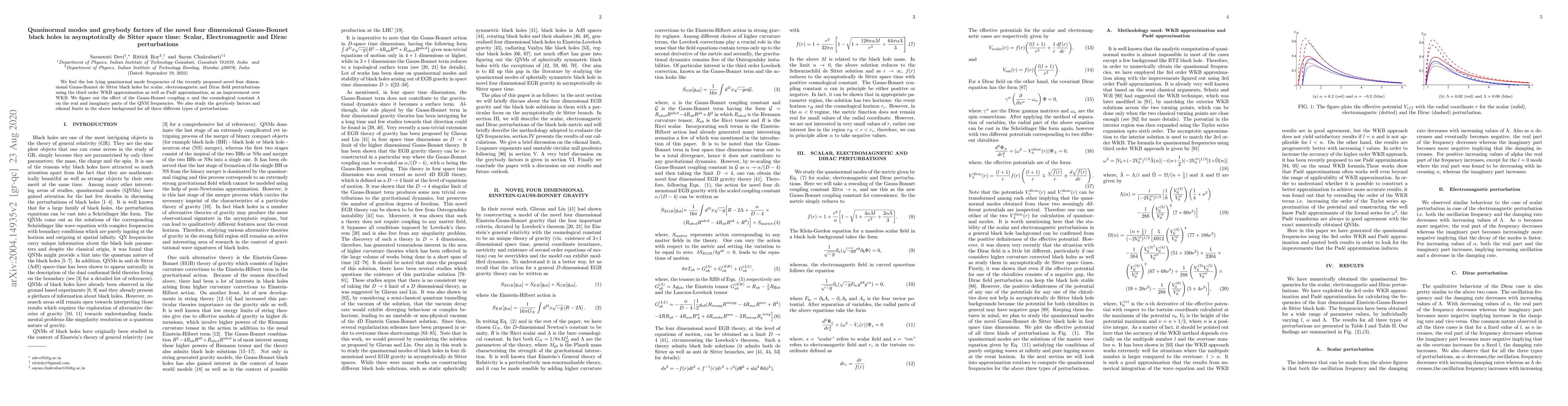 We find the low lying quasinormal mode frequencies of the recently proposed novel four dimensional Gauss-Bonnet de Sitter black holes for scalar, electromagnetic and Dirac field perturbations using the third order WKB approximation as well as Pad\'{e} approximation, as an improvement over WKB. We figure out the effect of the Gauss-Bonnet coupling $\alpha$ and the cosmological constant $\Lambda$ on the real and imaginary parts of the QNM frequencies. We also study the greybody factors and eikonal limits in the above background for all three different types of perturbations.