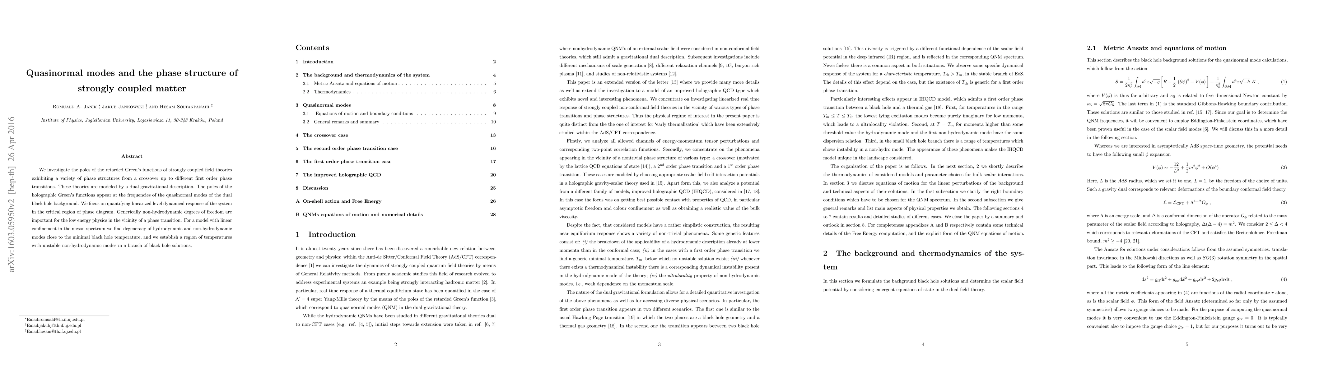 This paper examines the quasinormal modes of strongly coupled field theories through their holographic dual gravitational descriptions, revealing the dynamical response near phase transitions. It highlights the importance of non-hydrodynamic modes in low-energy physics and identifies regions with unstable non-hydrodynamic modes near the minimal black hole temperature.