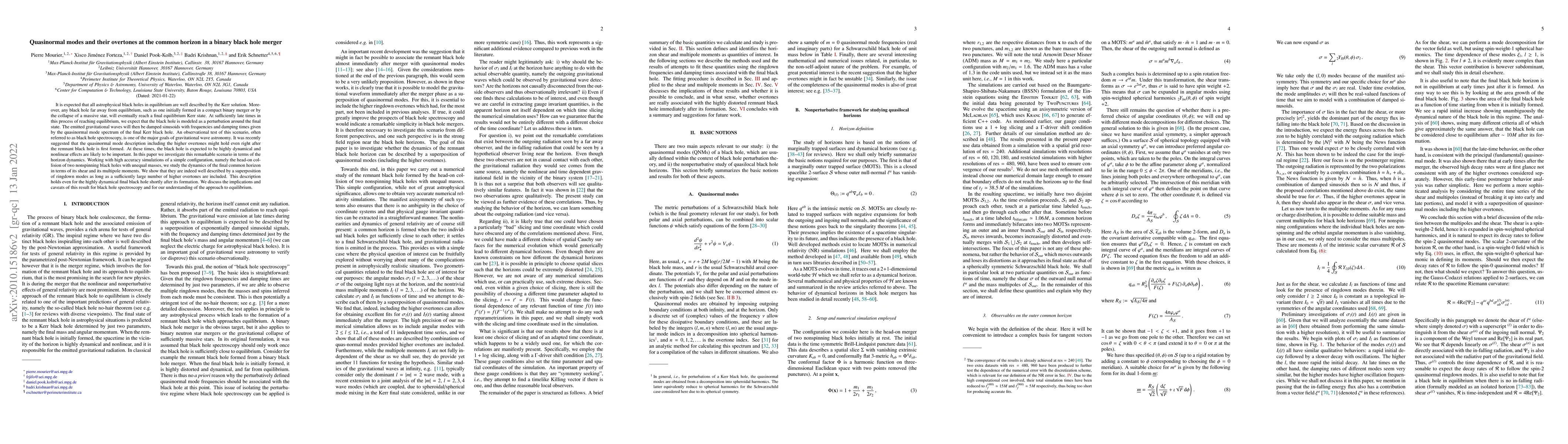 This paper investigates the quasinormal modes and their overtones in the final common horizon of a binary black hole merger, demonstrating that the horizon dynamics can be well described by a superposition of ringdown modes, including higher overtones, even shortly after the merger when the black hole is highly dynamical. The findings suggest potential implications for black hole spectroscopy and the understanding of the black hole's approach to equilibrium.