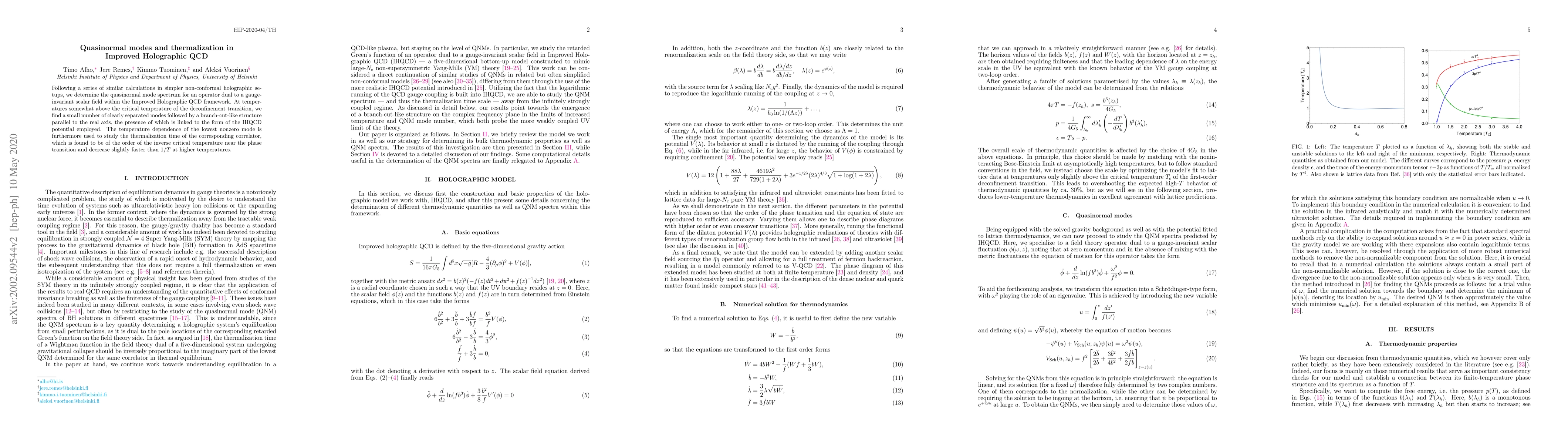 Researchers found quasinormal modes in an improved holographic QCD framework at temperatures above the critical transition point, which affects thermalization time.