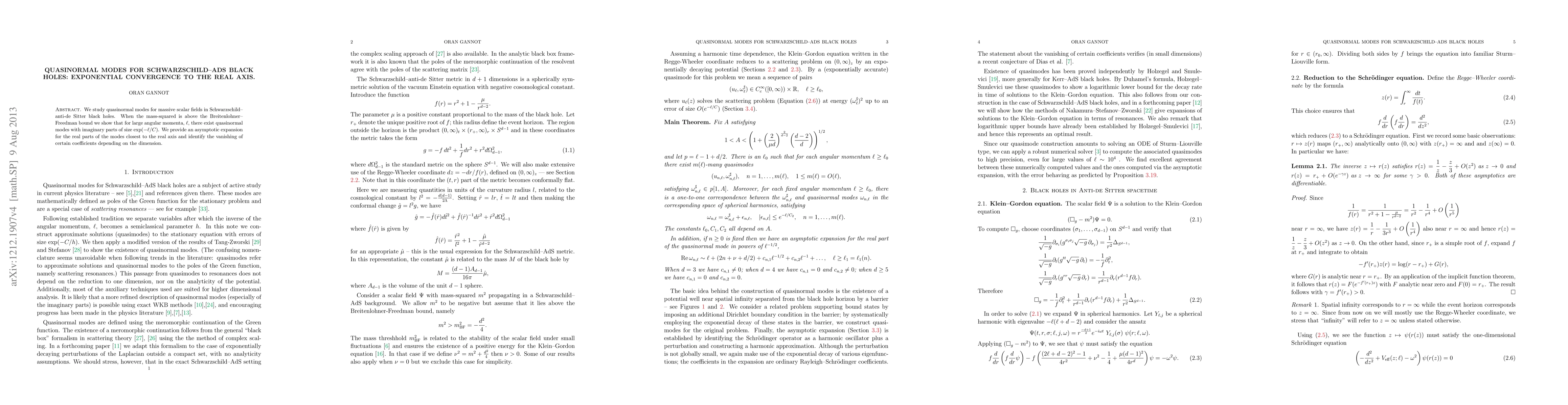 For massive scalar fields in Schwarzschild-AdS black holes with high angular momentum, quasinormal modes exhibit imaginary parts that decay exponentially with the momentum, leading to real parts that vanish under certain conditions.