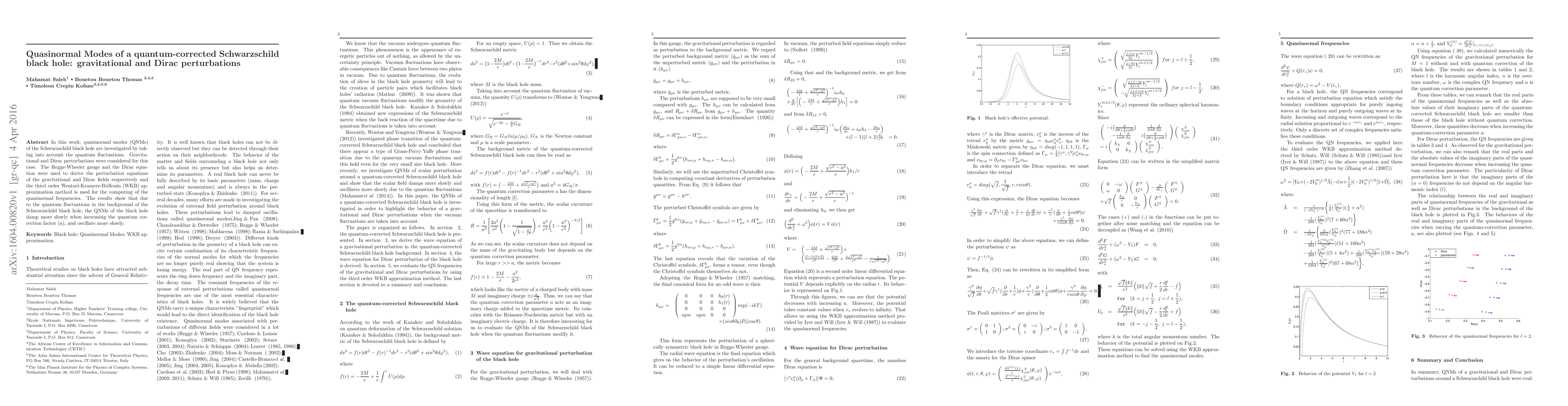 This research investigates quasinormal modes (QNMs) of a quantum-corrected Schwarzschild black hole, considering gravitational and Dirac perturbations. The study employs the Regge-Wheeler gauge and the Dirac equation, and uses the third-order WKB approximation to compute QNM frequencies, revealing that quantum fluctuations lead to slower damping and oscillation of QNMs with increasing quantum correction factor.
