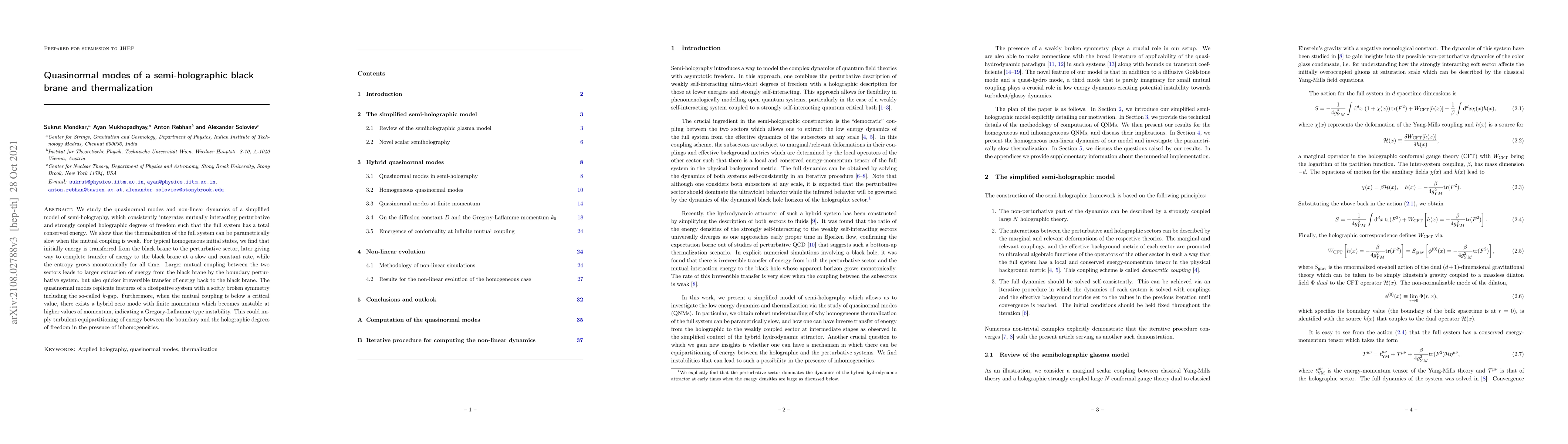 We study the quasinormal modes and non-linear dynamics of a simplified model of semi-holography, which consistently integrates mutually interacting perturbative and strongly coupled holographic degrees of freedom such that the full system has a total conserved energy. We show that the thermalization of the full system can be parametrically slow when the mutual coupling is weak. For typical homogeneous initial states, we find that initially energy is transferred from the black brane to the perturbative sector, later giving way to complete transfer of energy to the black brane at a slow and constant rate, while the entropy grows monotonically for all time. Larger mutual coupling between the two sectors leads to larger extraction of energy from the black brane by the boundary perturbative system, but also quicker irreversible transfer of energy back to the black brane. The quasinormal modes replicate features of a dissipative system with a softly broken symmetry including the so-called k-gap. Furthermore, when the mutual coupling is below a critical value, there exists a hybrid zero mode with finite momentum which becomes unstable at higher values of momentum, indicating a Gregory-Laflamme type instability. This could imply turbulent equipartitioning of energy between the boundary and the holographic degrees of freedom in the presence of inhomogeneities.